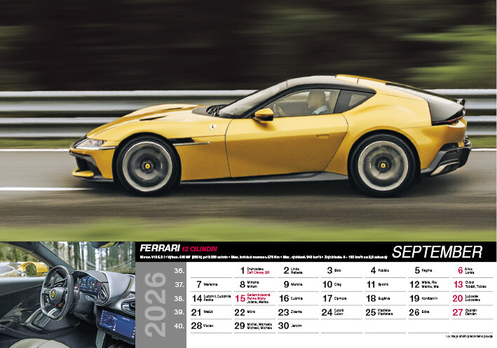 Kalendár Fast Cars predstavuje 12 precízne vybraných superšportových vozidiel, ktoré definujú spojenie výkonu, dizajnu a technickej dokonalosti. Každý mesiac ponúka detailné fotografie áut s výnimočnými parametrami, od akcelerácie cez aerodynamiku až po inovatívne pohonné systémy. Pre všetkých, ktorých fascinuje precízne inžinierstvo a svet rýchlych aut.
