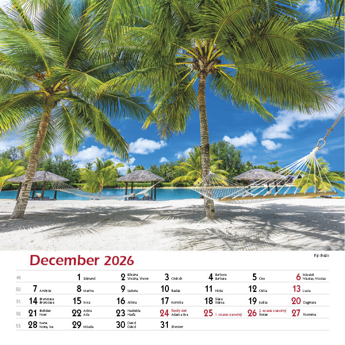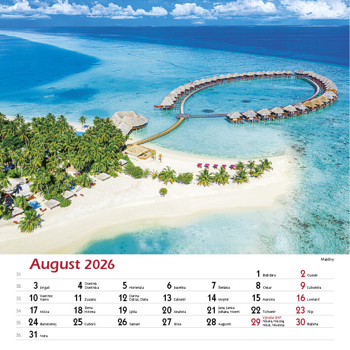 Oddajte sa letnému snívaniu po celý rok s týmto kalendárom plným rajských pláží a tropickej atmosféry. Sny leta vás zavedú na najkrajšie pobrežia sveta – belostné pláže Bahám, tyrkysové lagúny Bora Bora, palmové raje Fidži, exotické zákutia Srí Lanky. Perfektný kalendár pre milovníkov leta, cestovania a snov o dovolenke, ktorá nikdy nekončí.