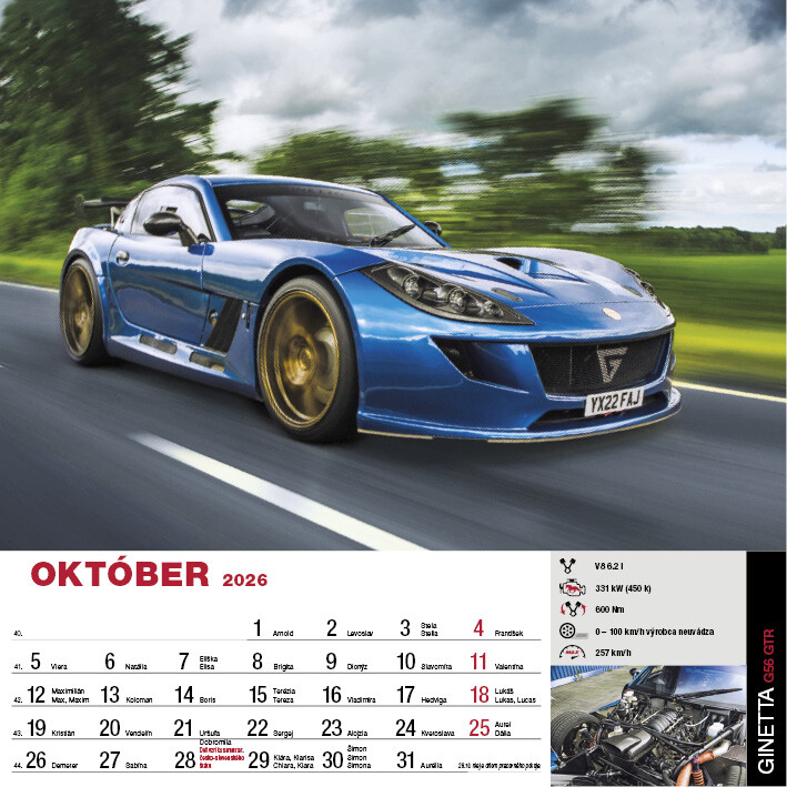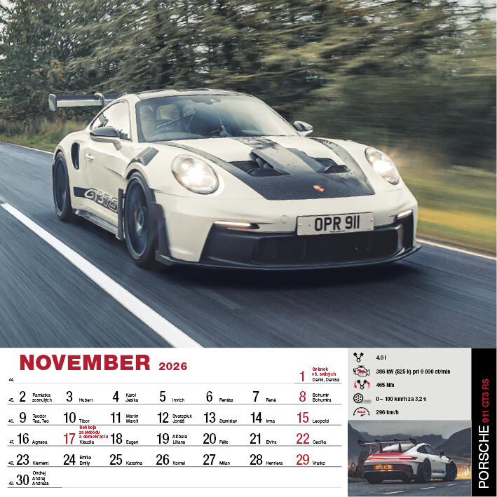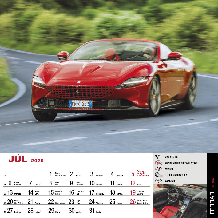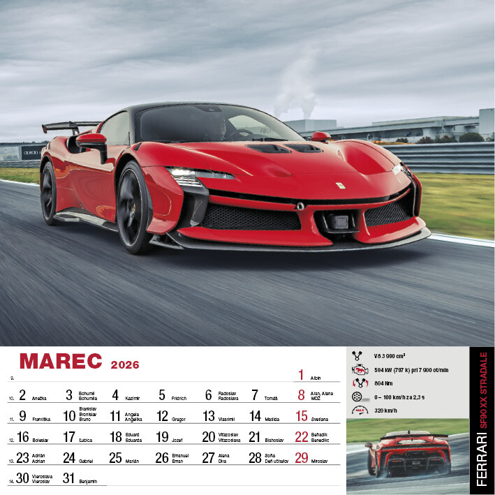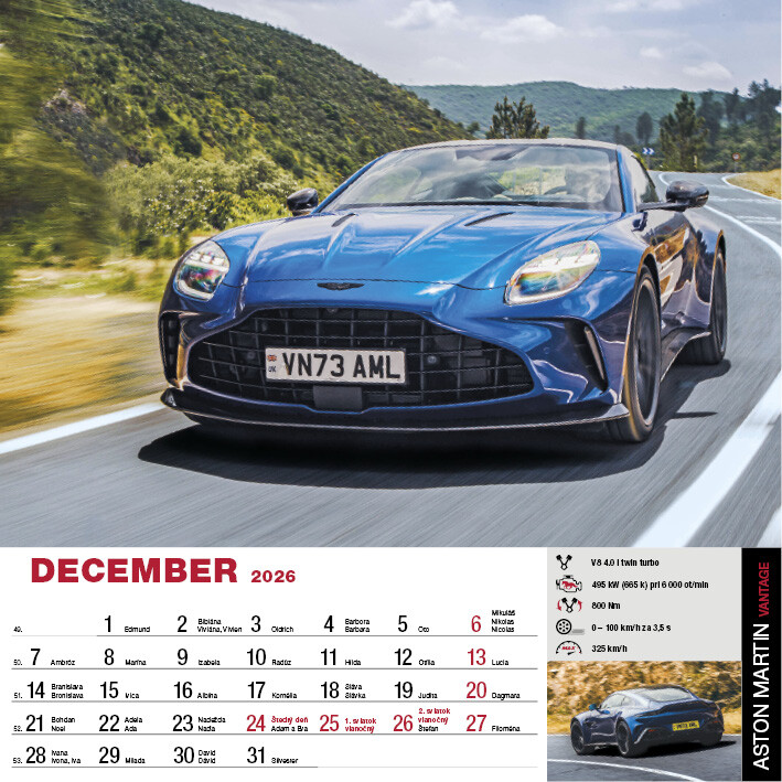 Kalendár SportCars predstavuje 12 precízne vybraných superšportových vozidiel, ktoré definujú spojenie výkonu, dizajnu a technickej dokonalosti. Každý mesiac ponúka detailné fotografie áut s výnimočnými parametrami, od akcelerácie cez aerodynamiku až po inovatívne pohonné systémy. Pre všetkých, ktorých fascinuje precízne inžinierstvo a svet športových áut.