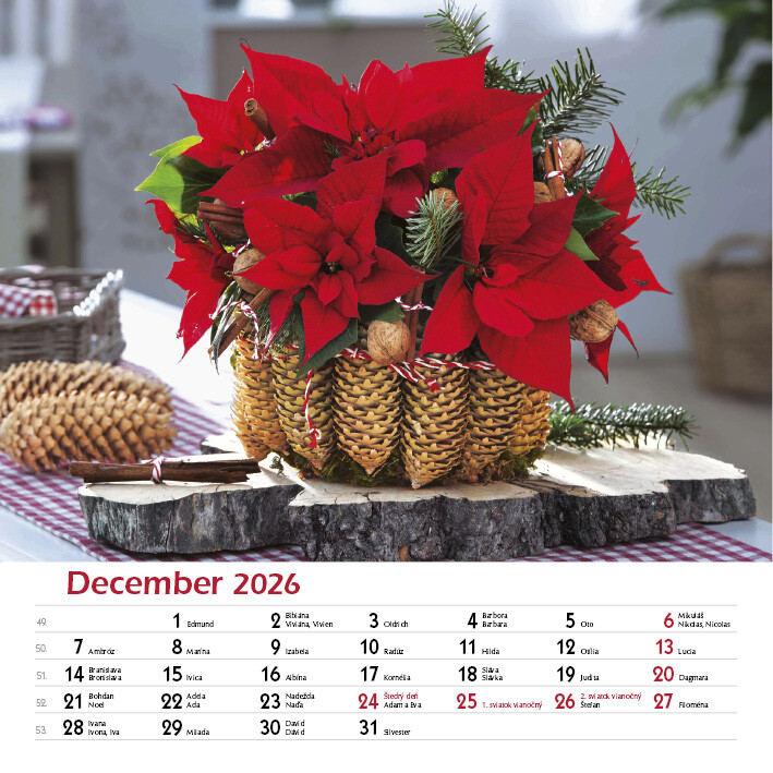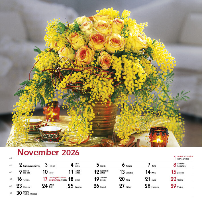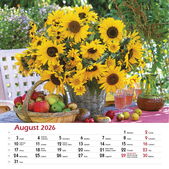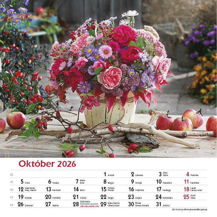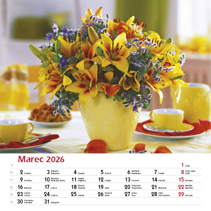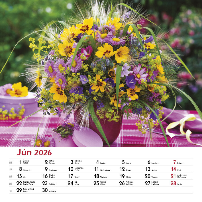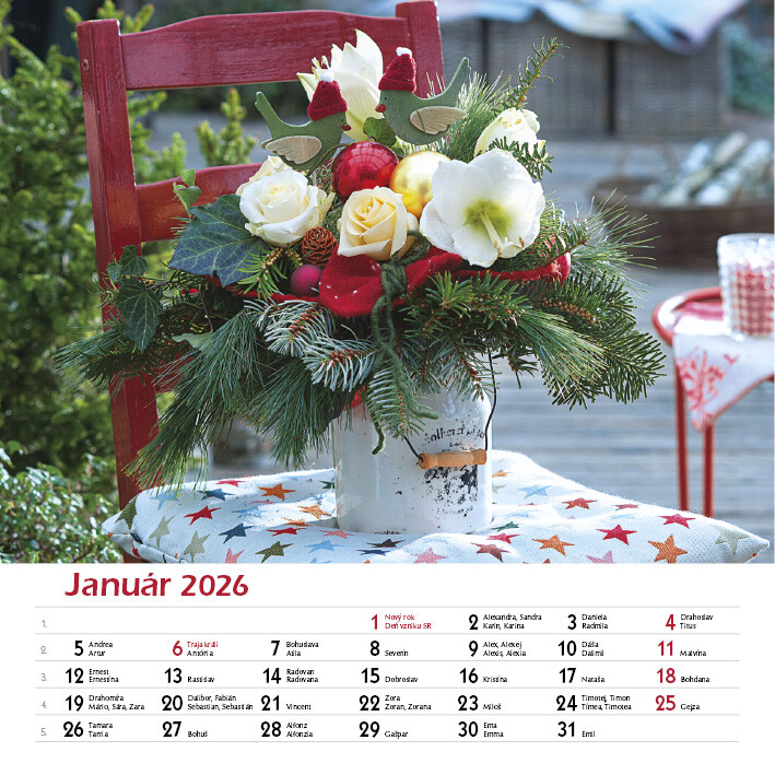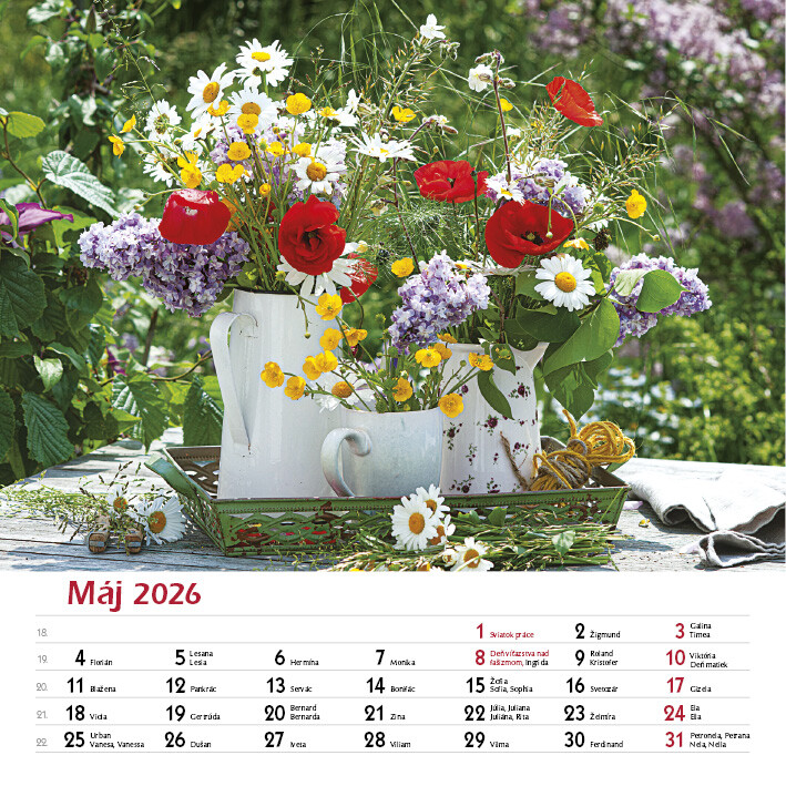 Tento elegantný kalendár zachytáva krásu ručne viazaných kytíc v rôznych štýloch, farbách a sezónnych kombináciách. Každý mesiac prináša inú náladu a iný kvetinový aranžmán.Od sviežich jarných kombinácií, cez letné explózie farieb, až po jemné jesenné tóny a zimnú eleganciu. Nechajte sa inšpirovať rozmanitosťou kytíc, ktoré rozžiaria každý deň.