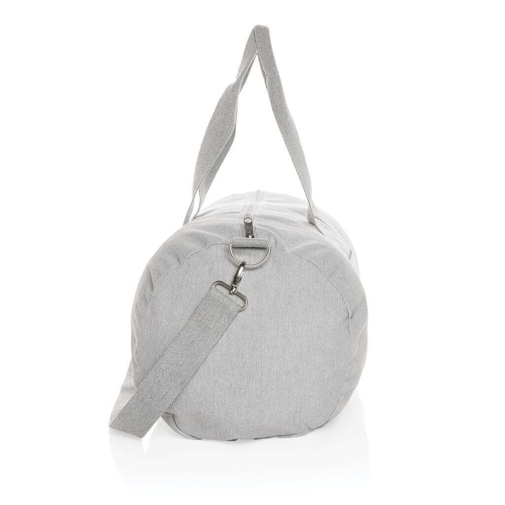 Taška ideálna na krátke víkendové výlety alebo na šport. Recyklované plátno zostáva v jeho pôvodnej farbe, pri výrobe tak nie sú používané chemikálie a dodatočné farbivá alebo bielidlá. Vrátane skenovateľnej zložky AWARE™ garantujúce obsah recyklátu. V porovnaní s konvenčným plátnom bolo výrobou každého kusu usporených 2 706 litrov vody, pri prírodnom farebnom variante až 3 089 litrov (absencia farbenia pôvodného materiálu určeného na recykláciu). Z výťažku každého predaného produktu z kolekcie Impact je navyše prispených 2 % na podporu iniciatívy Water.org. Zloženie materiálu: 70% recyklovaná bavlna, 30% recyklovaný polyester.