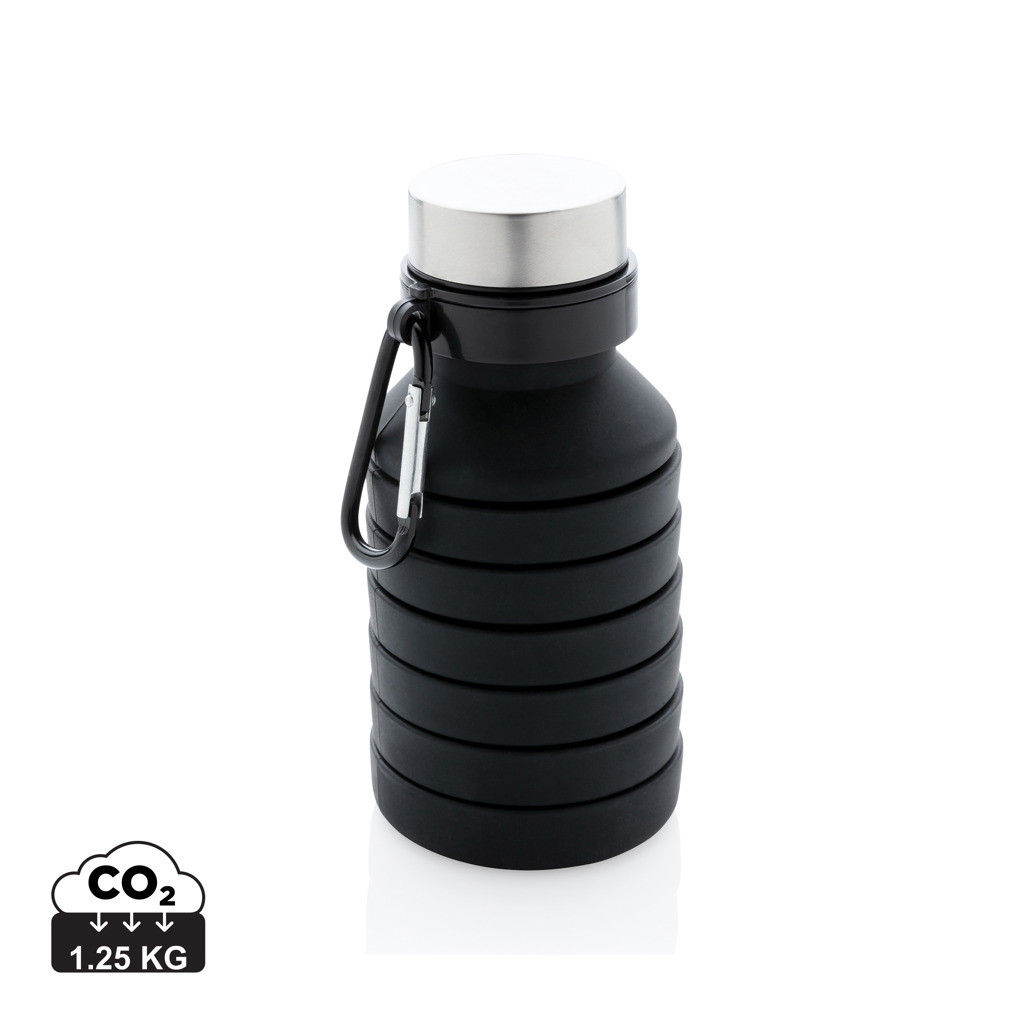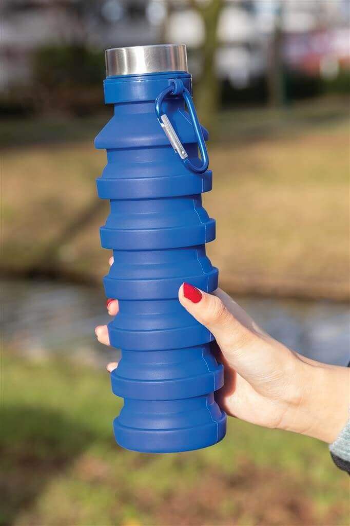 Chytro navrhnutá fľaša zo silikónu, ktorá po zložení ušetrí až 50% priestoru. Ideálna na outdoorové aktivity. Vyrobené z flexibilného ľahko umývateľného 100% potravinárskeho silikónu. Praktická karabína pre upevnenie na batoh. Bez BPA. Objem: 550ml.