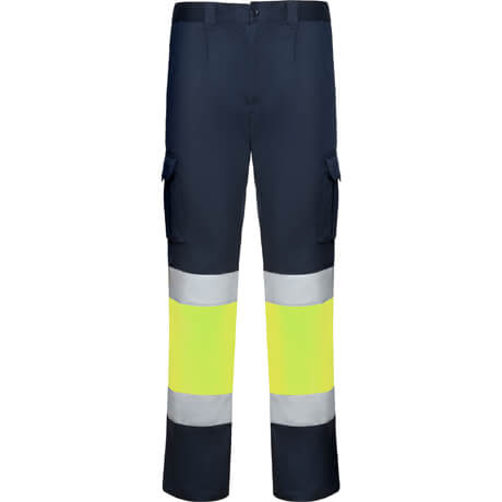 Dlhé reflexné kontrastné nohavice s niekoľkými vreckami | Pohodlný a pružný materiál | Elastický pás vzadu | Dve predné vrecká | Dve zadné vrecká s chlopňou a zapínaním na suchý zips | Dve bočné vrecká so skladmi, pätkou a zapínaním na suchý zips | Certifikované podľa EN ISO 13688:2013 a EN ISO 20471:2013/A1:2016 trieda I