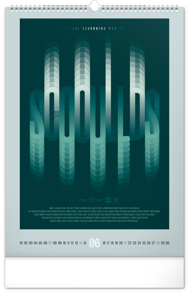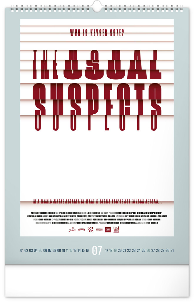 Nástenný kalendár s alternatívnymi filmovými plagátmi od grafického dizajnéra Olega Slepcoffa predstavuje originálny pohľad na slávne snímky ako Lúpež po taliansku, Pianista, Interstellar, Obvyklí podozriví alebo Môj sused Totoro. Každý mesiac ponúka jedinečné grafické stvárnenie, ktoré osloví milovníkov filmu aj designu. Kalendár je štýlovým doplnkom každého interiéru.