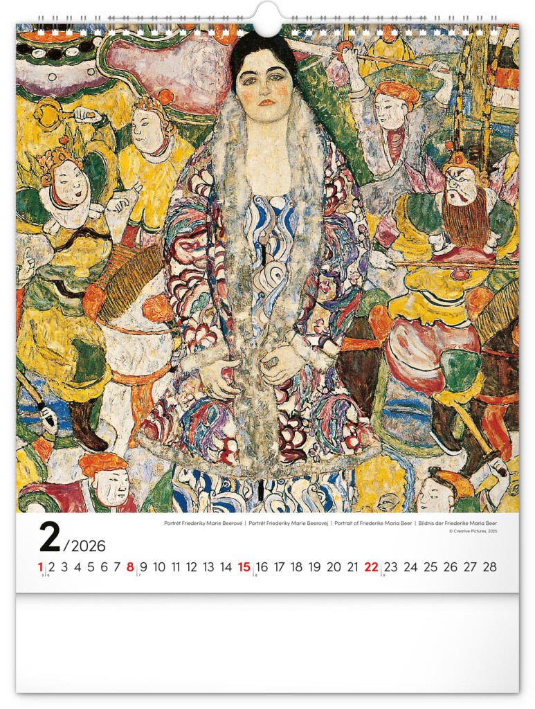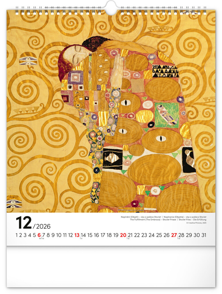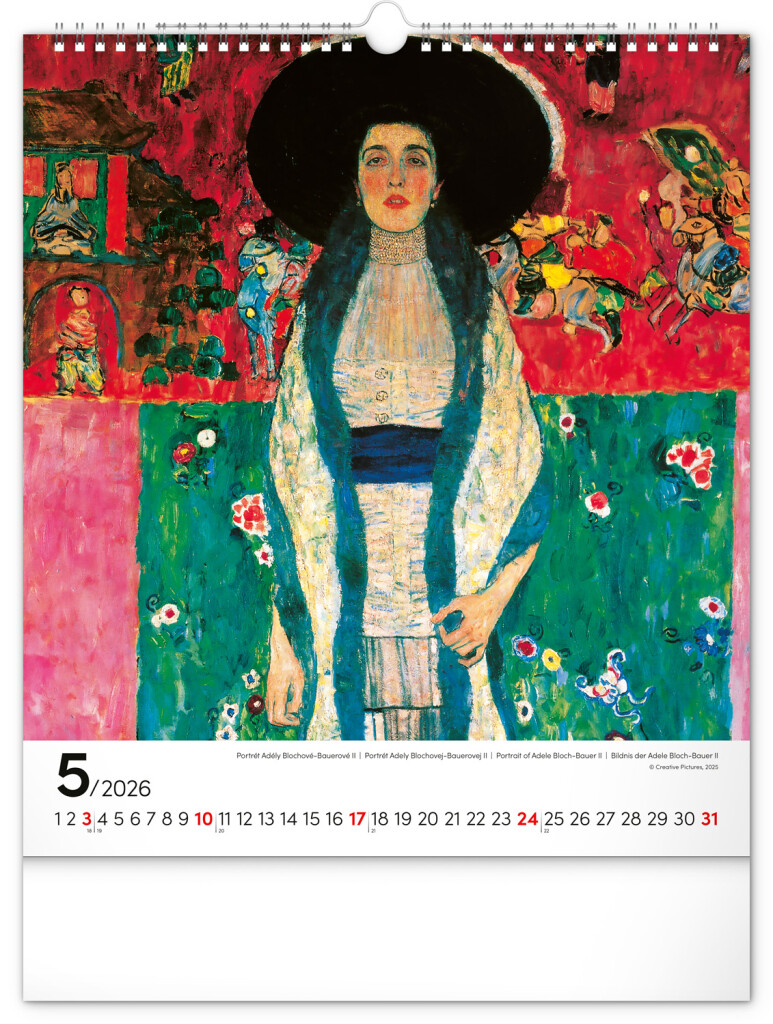 Na stranách kalendára v obdĺžnikovom formáte nájdete Klimtove obrazy žien vytlačené na kvalitnom papieri s vysokou gramážou. Kalendár obsahuje univerzálne kalendárium a popisky v štyroch jazykoch.