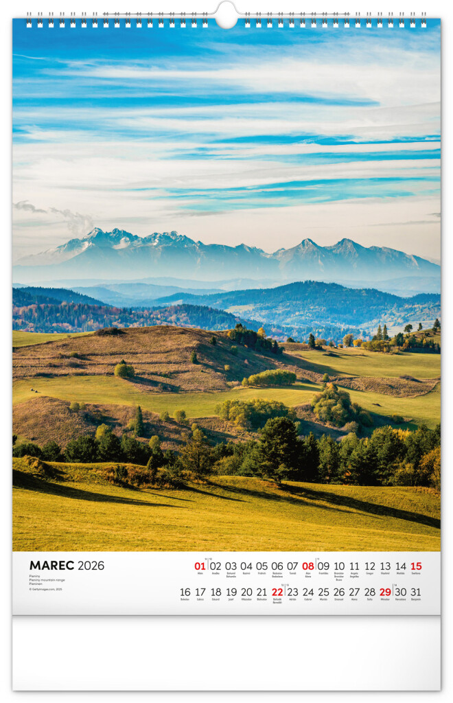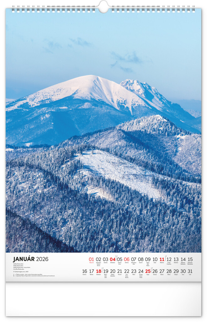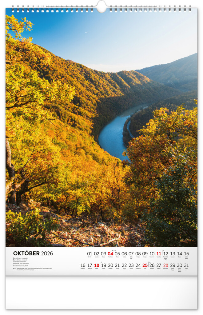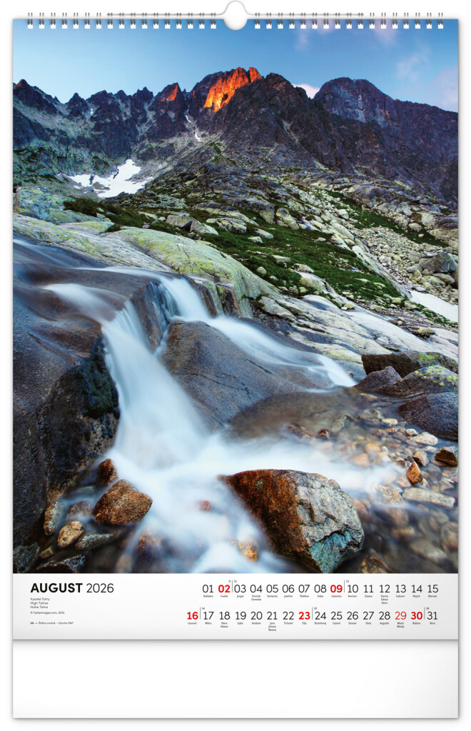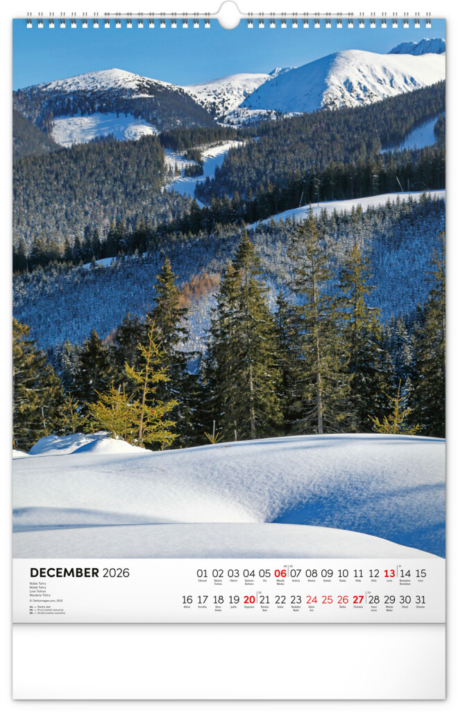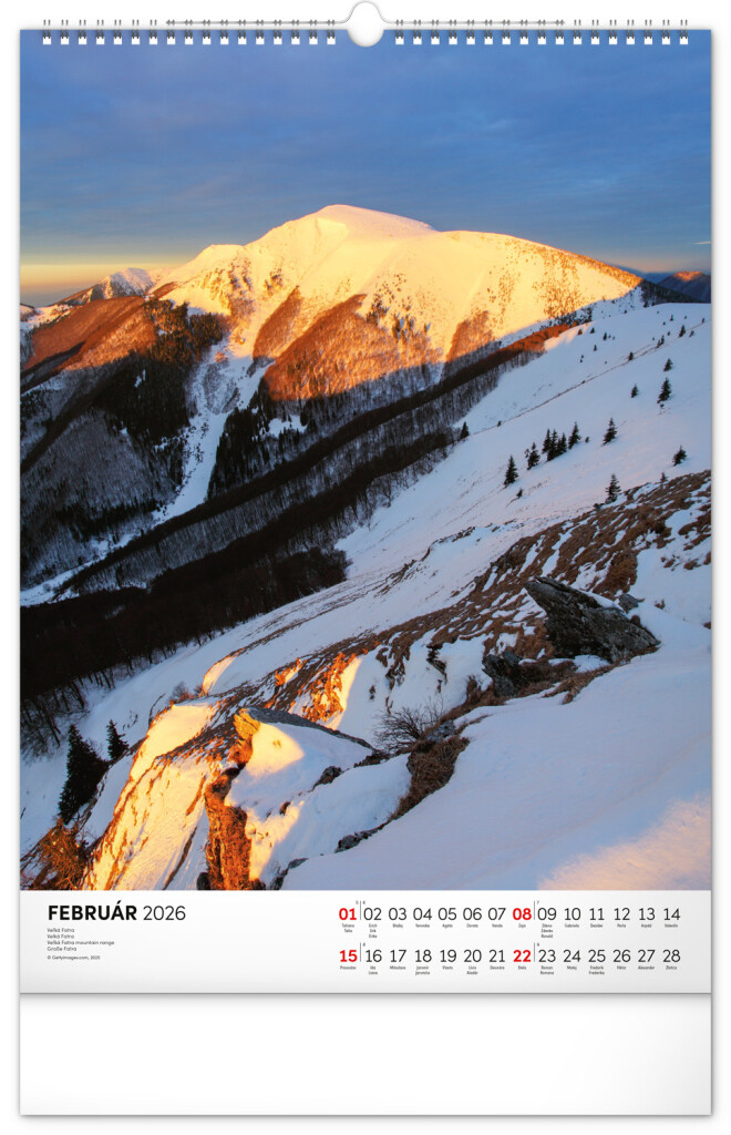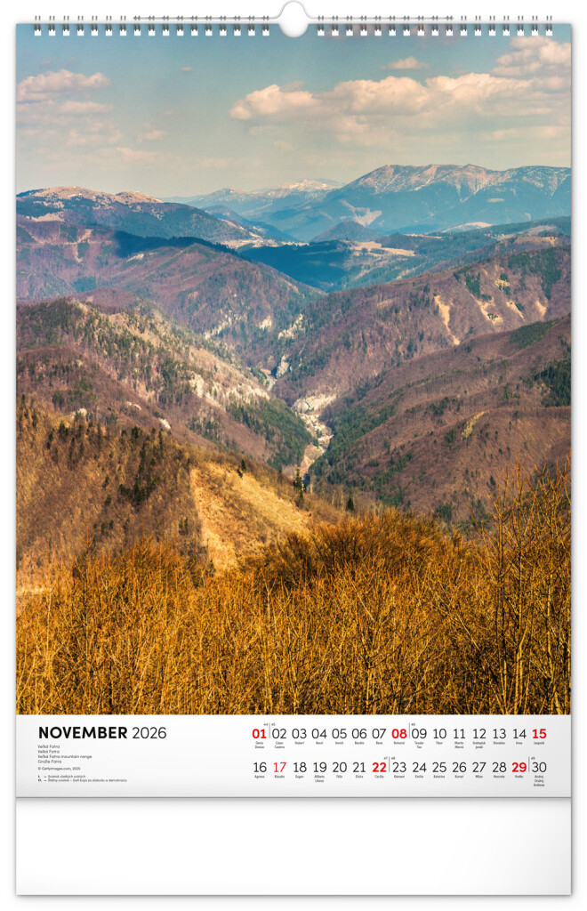 Nástenný kalendár obsahuje dvanásť farebných fotografií zo slovenských národných parkov. Obsahuje slovenské kalendárium s menami na bielom pozadí.