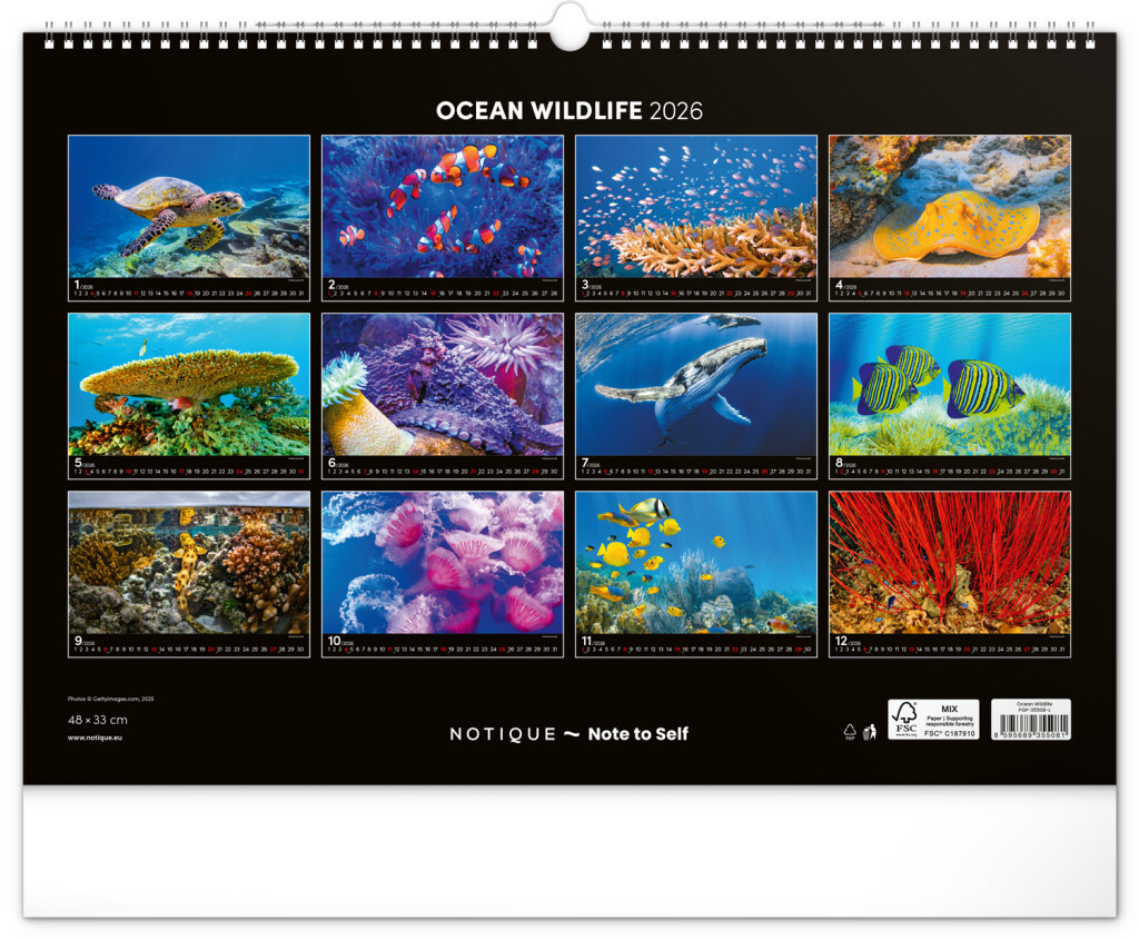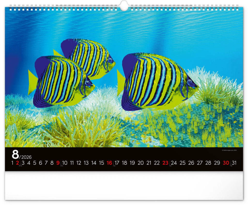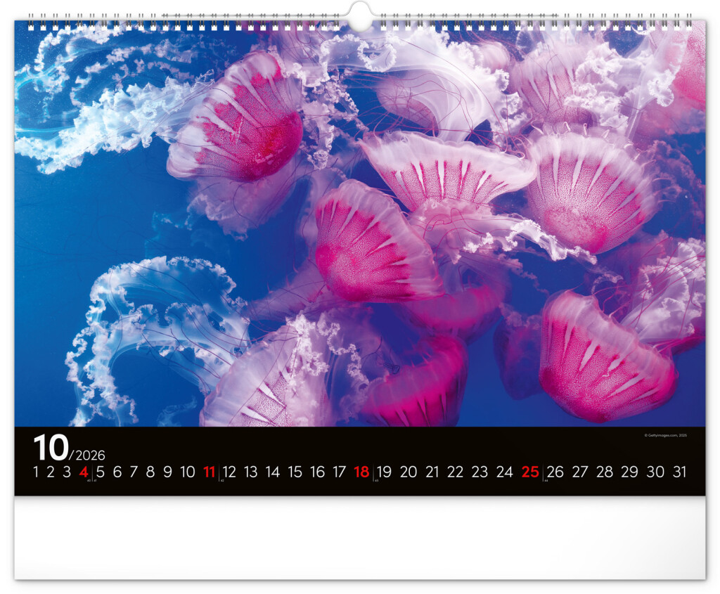 Preskúmajte v tomto veľkoformátovom kalendári krásy podvodného života vo svetových oceánoch. Morské koníky, chobotnice a koraly vyniknú na luxusnom papieri s vyššou gramážou.