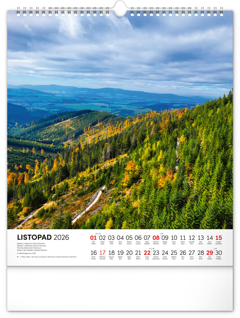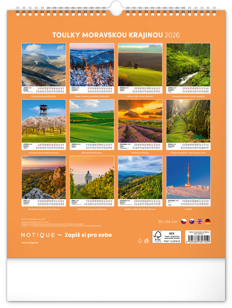 Nástenný kalendár oslavuje krásy Moravy v celej jej rozmanitosti. Vnútri nájdete dvanásť pôsobivých fotografií moravskej krajiny, doplnených českým kalendáriom s českými menami. Praktický formát vhodný do každého interiéru.
