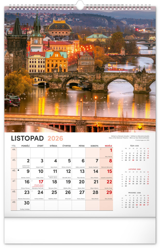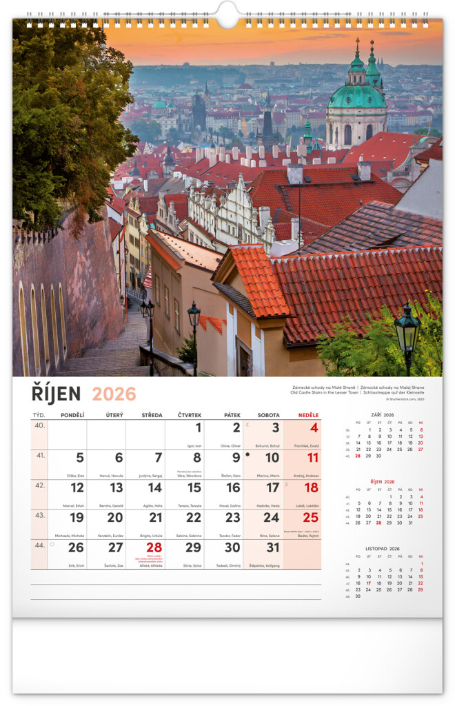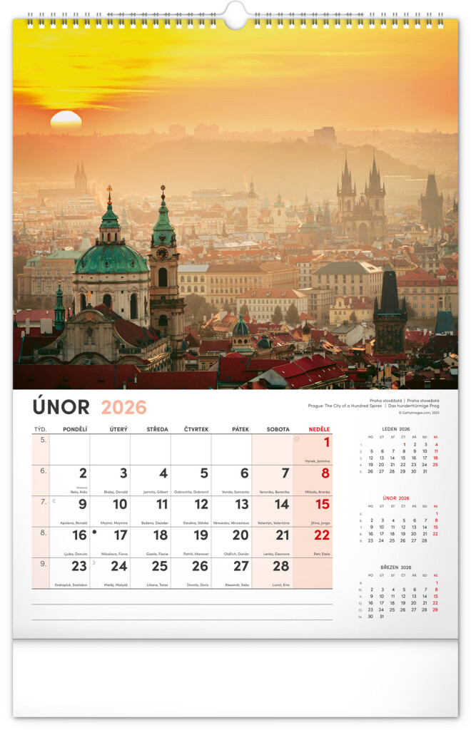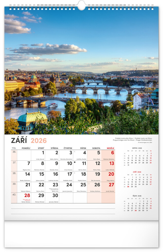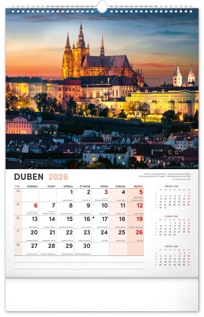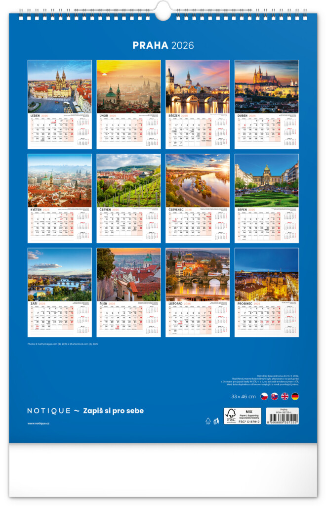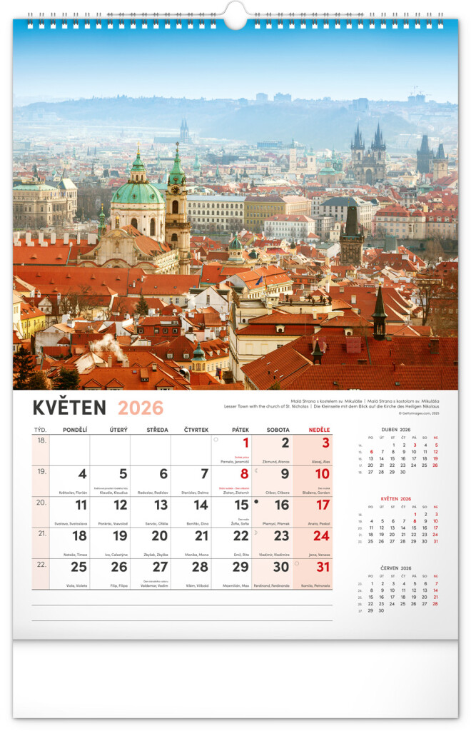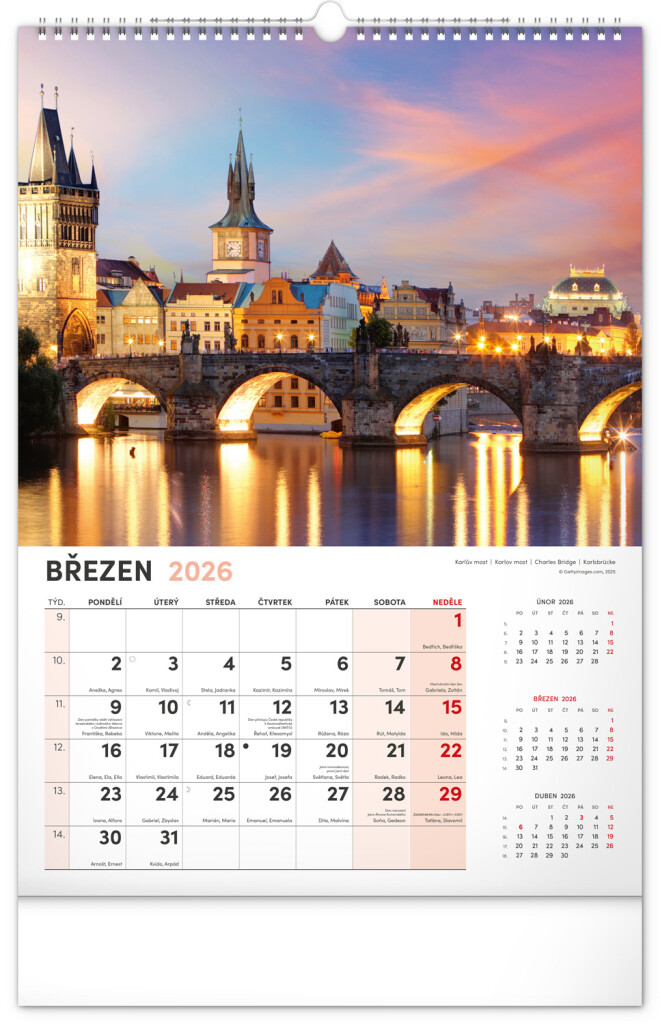 Kalendár, ktorý vás prevedie slávnymi pamiatkami českého hlavného mesta, ktoré právom patrí medzi najkrajšie mestá Európy. Prostredníctvom dvanástich fotografií v portrétnom formáte navštívite známe pamiatky aj nevšedné zákutia. Zábery Karlovho mosta, Pražského hradu či Václavského námestia sprevádzajú popisky v štyroch jazykoch a jednoduchý biely kalendár. Kalendár poteší všetkých milovníkov histórie a architektúry.