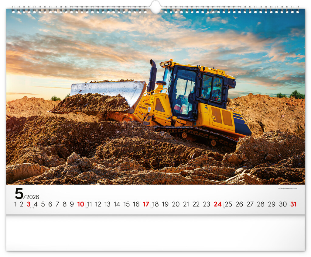 Nástenný kalendár pre všetkých milovníkov veľkých a ťažkých stavebných strojov. Dvanásť snímok ťažkotonážnej stavebnej techniky na stránkach kalendára v šírkovom formáte. Fotografie sú doplnené univerzálnym kalendáriom na čiernom pozadí.