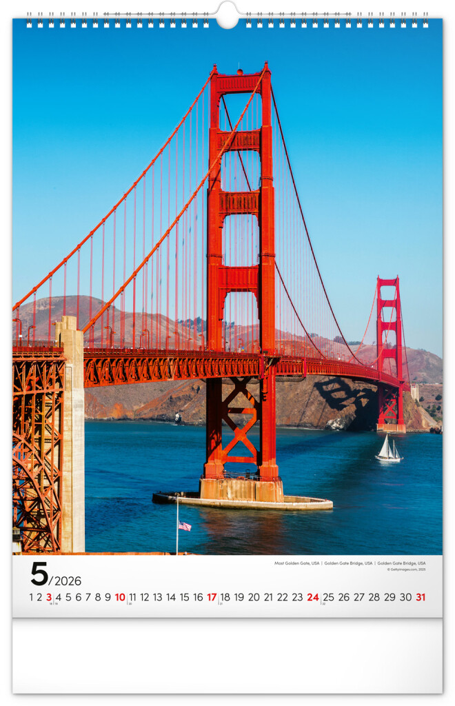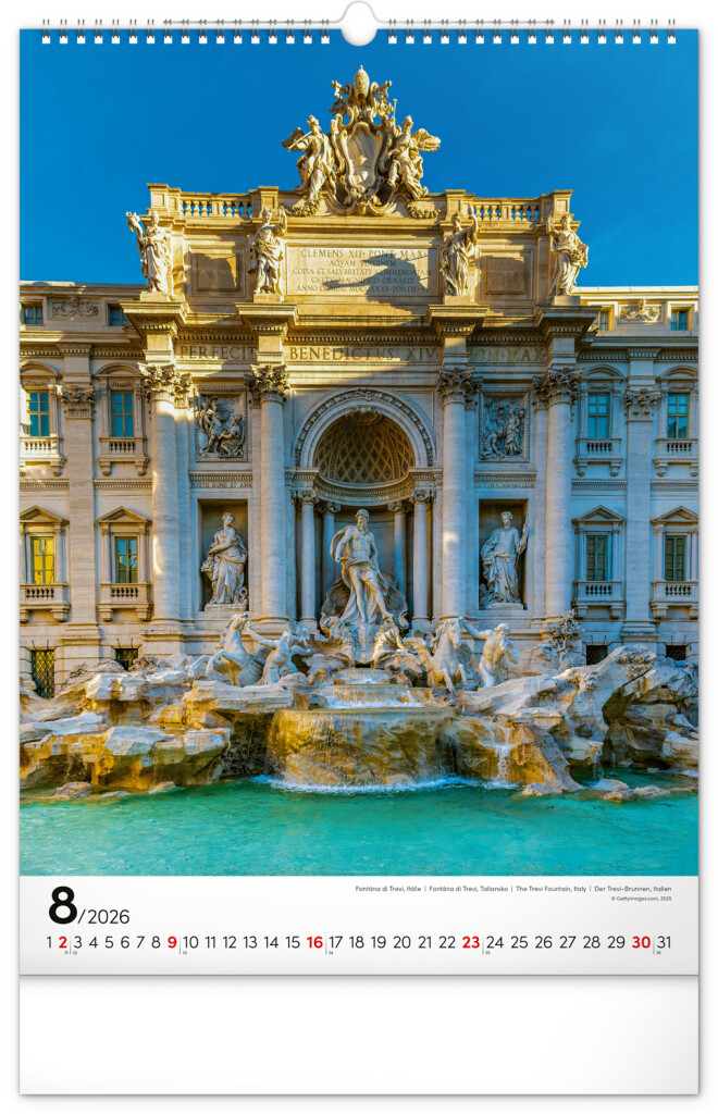 Procestujte prostredníctvom nášho kalendára rozličné destinácie, kde boli vytvorené dych vyrážajúce stavby. Sýto farebné výjavy pekne vyniknú na bielom pozadí s jednoduchým kalendáriom.