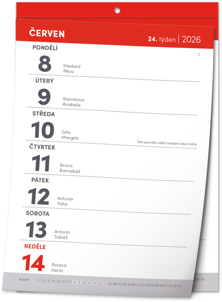 Nástenný trhací kalendár, s ktorým vám rok doslova utečie pred očami. Praktický formát A5 je vhodný do každej miestnosti. Týždenné kalendárium obsahuje české mená, sviatky a pamätné dni a prehľad aktuálneho mesiaca u každého týždňa.