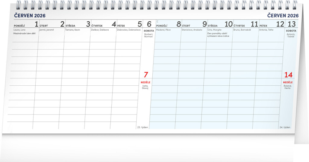 V 14-dennom stolnom kalendári je veľa priestoru na poznámky, ďalej české kalendárium, sviatky a pamätné dni aj mesačné fázy. To všetko v prehľadnom dvojtýždňovom rozvrhnutí.