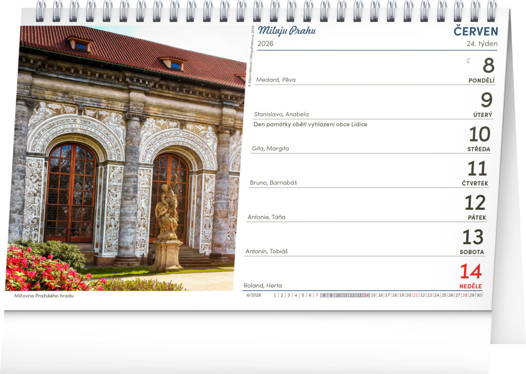 Praha a jej zákutia na fotografiách stolného kalendára pripraveného v spolupráci so značkou Miluju Prahu. Na rok 2026 boli použité fotografie od Kláry Hášovej.