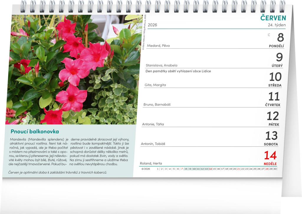 Praktický stolný kalendár plný užitočných rád a tipov pre úspešných záhradkárov. Na záhrade je celý rok čo robiť. S naším kalendárom sa detailne zoznámite so sezónnymi záhradkárskymi prácami a nájdete tu aj rad tipov, ktoré vám zaručia hojnejšiu úrodu. Praktický a prehľadný kalendár vás zoznámi s tým, čo je najlepšie urobiť pre vašu milovanú záhradu či záhradku. Stolový kalendár s českým kalendáriom obsahuje sviatky a pamätné dni, mesačné fázy a prehľad na celý rok 2026 a 2027.
