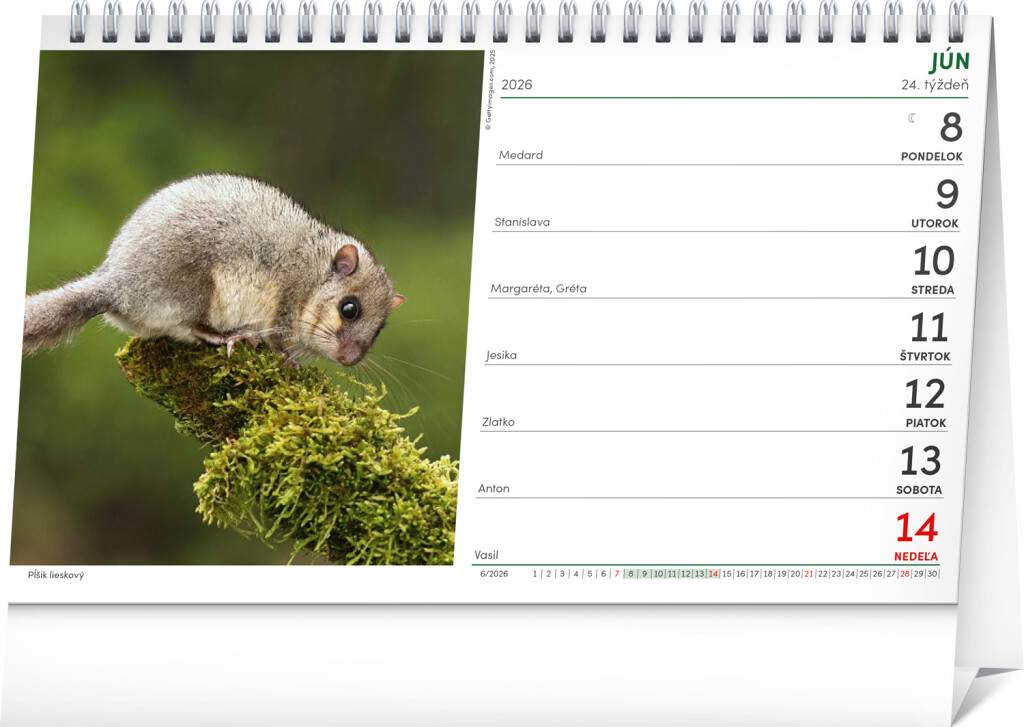 Obľúbený stolný kalendár obsahuje množstvo dôležitých informácií pre každého poľovníka. Nájdete tu doby východu a západu slnka a mesiaca na Slovensku, informácie o aktivitách zveri a prírodných aktualitách v priebehu roka a tiež prehľad o dobe lovu srstnatej a pernatej zveri. Tieto praktické informácie dopĺňajú nádherné fotky divokej zveri od fotografa Miroslava Hlávka a kalendárium so slovenskými menami, sviatkami a pamätnými dňami.