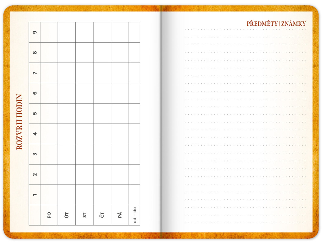 Študentský diár s obľúbeným motívom Harryho Pottera obsahuje prehľad na rok 2025 a 2026, české týždenné riadkové kalendárium s menami a sviatkami, rozvrh hodín, priestor na poznámky a základné poznatky z matematiky, fyziky, chémie a angličtiny pre študentov. Kalendárium začína v septembri 2025 a končí v decembri 2026.