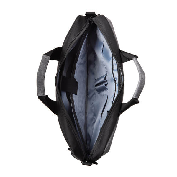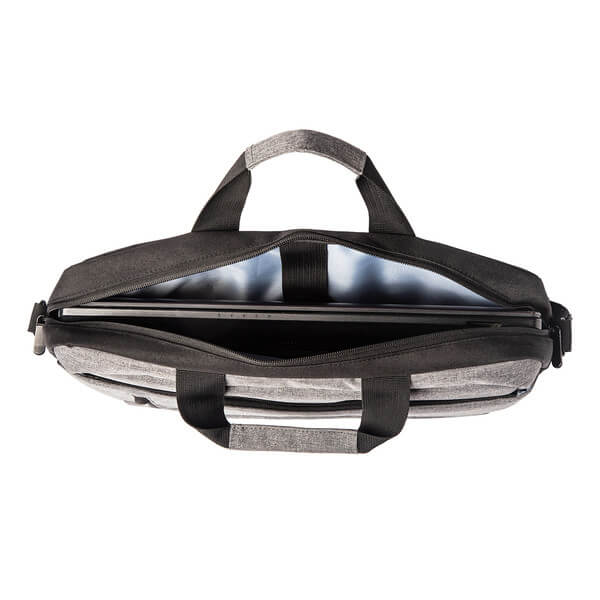 Nadčasová taška na notebook z polyesteru Oxford potiahnutá PVC. Materiál odolný proti roztrhnutiu. Veľké vystužené vrecko na 17" notebook. 6 vnútorných vreciek (rôzne veľkosti) a 3 vonkajšie vrecká vám umožnia vziať si všetko, čo potrebujete. Odnímateľný popruh vám umožní nosiť tašku na ramene. Ďalší popruh na zadnej strane umožňuje jej umiestnenie na rukoväť kufra.