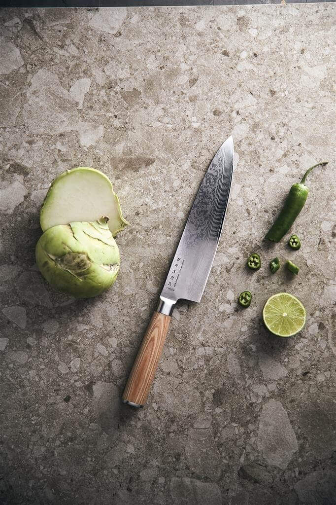 Tento nôž z edície pre šéfkuchára je ideálny na krájanie mäsa a väčšej zeleniny alebo krájanie byliniek. Robustná rukoväť z dreva pakka je ergonomicky navrhnutá na jednoduché použitie noža. Vďaka tomu vás ani pri dlhej práci s nožom nebude bolieť ruka. Čepeľ má úžasne tvrdé jadro z ocele VG10, ktoré je odliate z 67 vrstiev ocele. Výsledkom je odolná čepeľ s neuveriteľnou ostrosťou a vynikajúcim rezným výkonom.