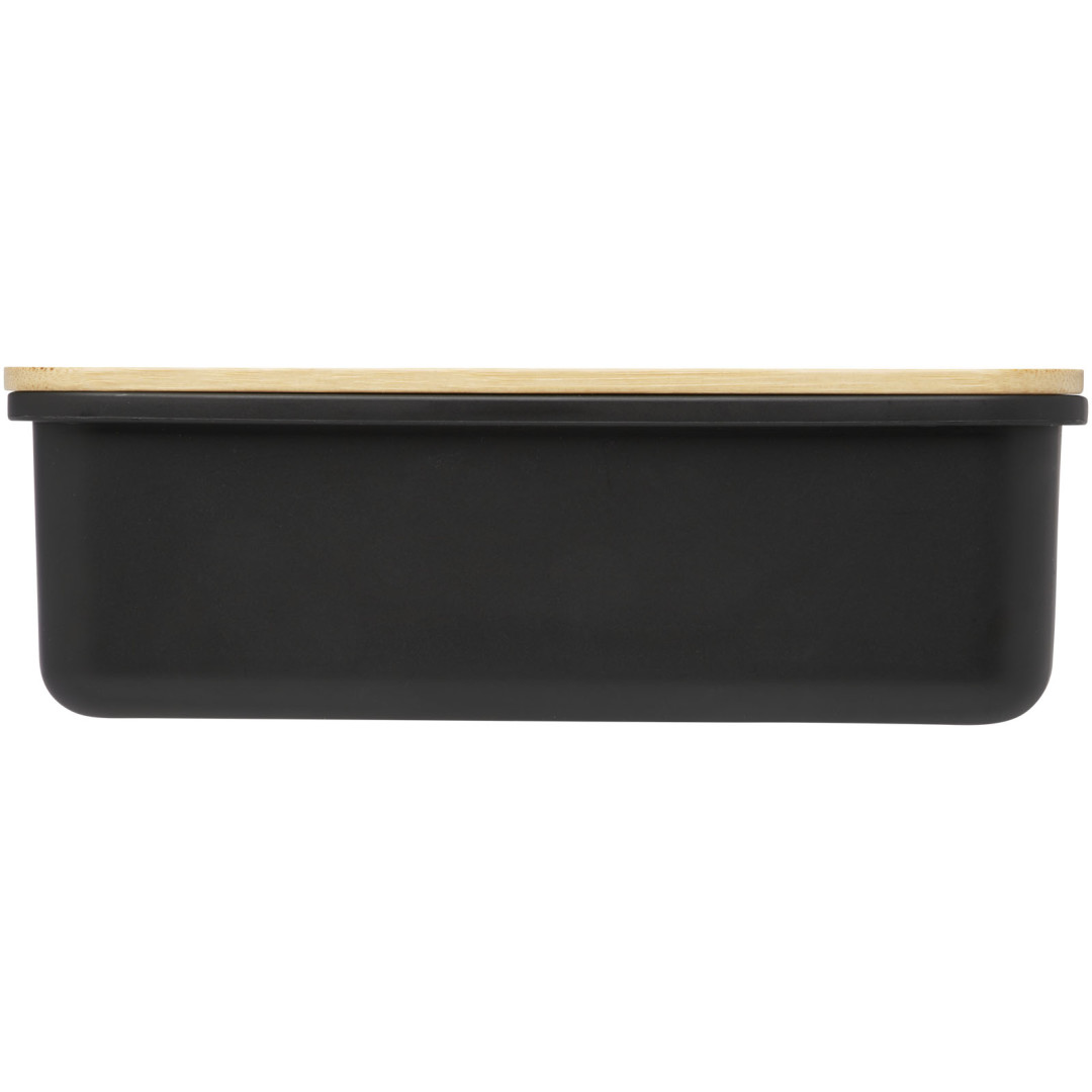 Olovrantový box Mangi je vyrobený z recyklovaného plastu a má objem 750 ml. Obsahuje bambusové veko a elastický pásik, ktorý drží veko na mieste a zaisťuje, že obsah zostane čerstvý. GRS certified recycled plastic, FSC certified bambus.