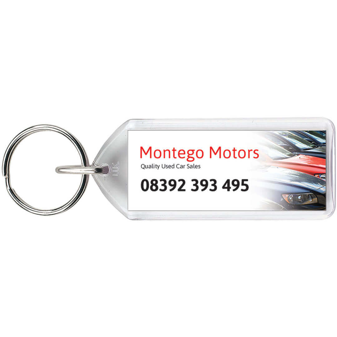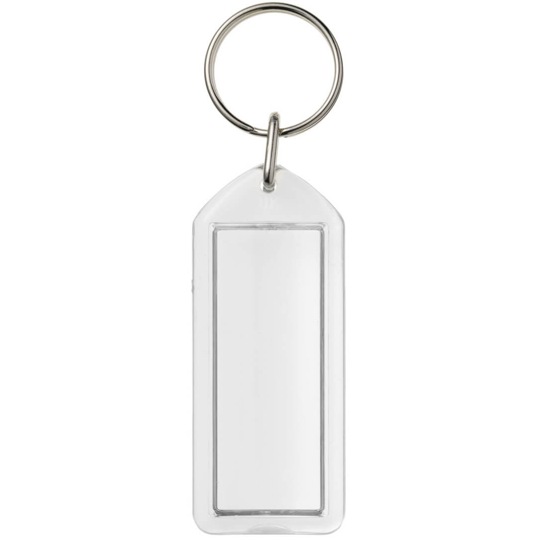 Číra obdĺžniková kľúčenka F1 s kovovým krúžkom. Túto kľúčenku možno opätovne otvoriť mincou. Kovový krúžok má plochý profil, ktorý je ideálny pre korešpondenciu. Rozmery potlačené vložky: 5,0 cm x 2,0 cm. Plast GPPS.