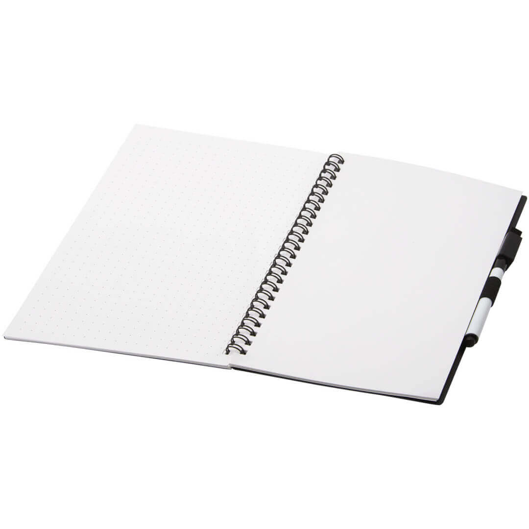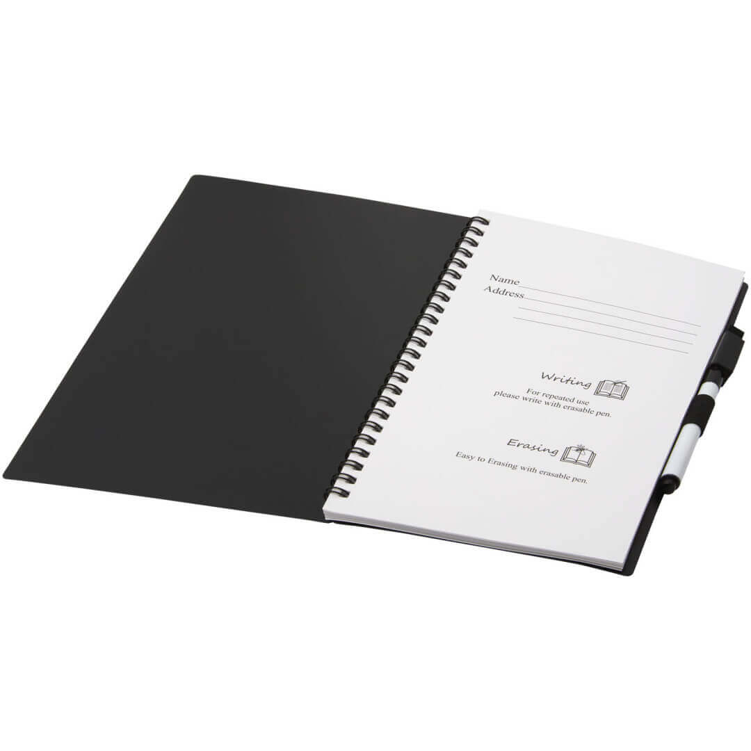 Udržateľný zošit zameraný na zníženie spotreby papiera za účelom ochrany životného prostredia. Po chvíli písania poznámok, kreslenia alebo brainstormingu je možné stránky vyčistiť gumou na fixy a stránky znovu použiť. Možno ho tiež čistiť bežnou látkovou handričkou (nie je súčasťou balenia). Obsahuje 40 listov s napoly bodkovaným a napoly prázdnym rozvrhnutím a čiernou fixkou na písanie.