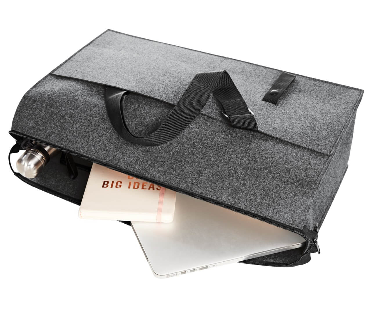 Recyklovaná PES plsť | Značne vybavený organizér | Veľký hlavný oddiel s dvojcestným zipsom | Ploché vložené vrecko, veľké vložené vrecko na zips, dve pútka na upevnenie, napr. na fľaše, vrecko na vizitky, 3 vnútorné vložené vrecká | Tri vložené vrecká zvonku | Popruhy na prenášanie s nastaviteľnou dĺžkou | Upevňovacie pútko napr. pre pás automobilu | Obsah/dekorácia nie sú súčasťou balenia
