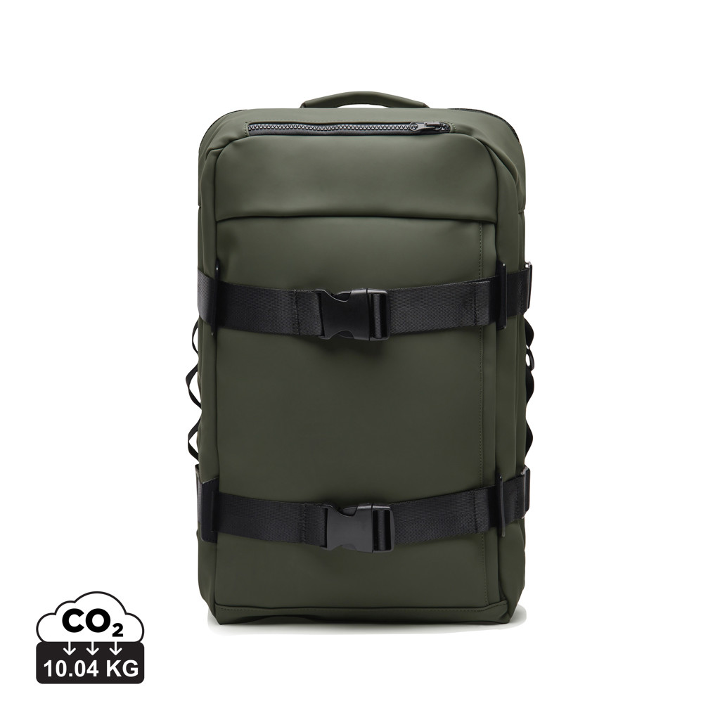 Otdoorový batoh vyrobený z čiastočne recyklovaného polyesteru s certifikáciou RCS. Vonkajšia strana má elegantnú PU povrchovú úpravu, sieťovaný podklad na ramenných popruhoch a chrbte pre maximálne pohodlie. Batoh ponúka priehradku na notebook, dve vonkajšie vrecká a priestrannú sieťovanú časť vo vnútri, ktorá udrží vašu výbavu usporiadanú. Popruh na zadnej strane umožňuje ľahké pripevnenie k taške na kolieskach. Bočný zips ponúka pohodlný prístup do hlavného sieťovaného vrecka. Jedná sa o ideálny batoh pre každodenné dochádzanie do práce aj víkendové dobrodružstvá. Certifikát RCS zaručuje, že celý dodávateľský reťazec recyklovaných materiálov je certifikovaný. Celkový obsah recyklovaných materiálov sa odvíja od celkovej hmotnosti výrobku. Tento výrobok obsahuje 16% recyklovaného polyesteru s certifikáciou RCS.