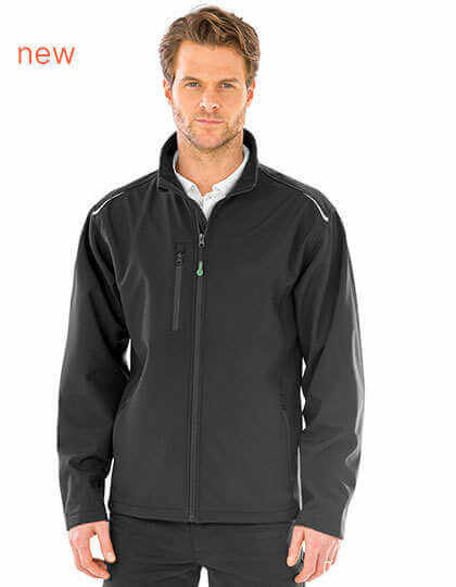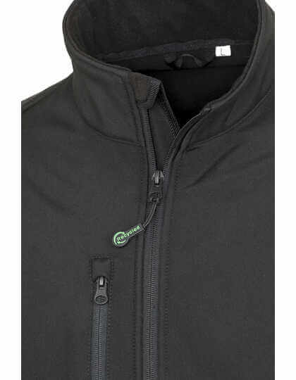 Materiál: 3-vrstvový recyklovaný mechanický softshellový materiál 300 g/m² obsahujúci: vonkajšiu vrstvu: 100 % recyklovaný polyester TOPGREEN®; strednú vrstvu: vodeodolnú (vodný stĺpec 8 000 mm), priedušnú (1 000 g) a vetruodolnú membránu z TPU; vnútornú vrstvu: 100% mikroflís z recyklovaného polyesteru | Odolný povrch odpudzujúci vodu | Priedušné | Odolné voči vetru | Predný zips YKK s chráničom brady a pútkom na zipse | Reflexný ramenný lem vpredu a vzadu | Ozdobné prešívanie vpredu a vzadu na sedle | Zips na hrudi a predných vreckách | Tvarované panely | Otvorená manžeta a pás | Stojačik | Závesné pútko | Ekologické materiály TOPGREEN® vyrobené z recyklovaných PET fliaš | Na konci životnosti recyklovateľné | Bez PFOA | Pripravené na opatrenie značkou | Polybag je biologicky rozložiteľný | Vyrobené z 19 (1litrových) plastových fliaš