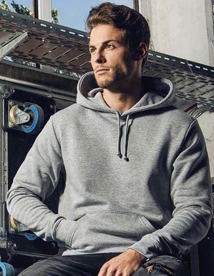Vrecko na vačku. Dvojitá kapucňa s podšívkou. Elastanové rukávové manžety a pás. 80% česaná bavlna / 20% polyester (Športová sivá: 85% česaná bavlna / 15% viskóza)