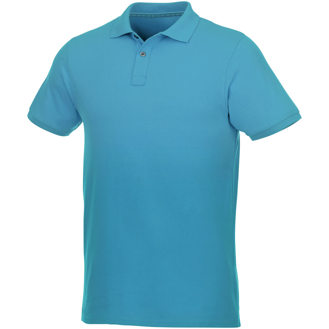 Udržateľné reklamné predmety. Udržateľné kovové gombíky. Plochý rebrový golier. Rebrový úplet manžetiek. Na dva gombíky. Priekrčník v dvoch farbách. Dvojité stehovanie. Piké úplet70% GOTS certified organic cotton, 30% GRS certified recycled polyester, 220 g / m2.
