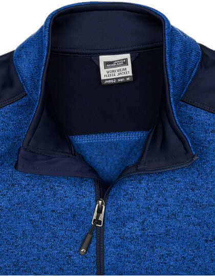 Pletená flísová bunda s ľahkou údržbou zo zmesi materiálov | Mäkká, teplá látka s jednoduchou údržbou | Vonkajší pletený vzhľad, vo vnútri zdrsnený, teda mäkký a nadýchaný | Elastické softshellové vsadky na strane, na ramenách a na rukávoch | Dve bočné vrecká so zapínaním na skrytý zips | Stojačik | Dlhý zakrytý predný zips s ochranou brady