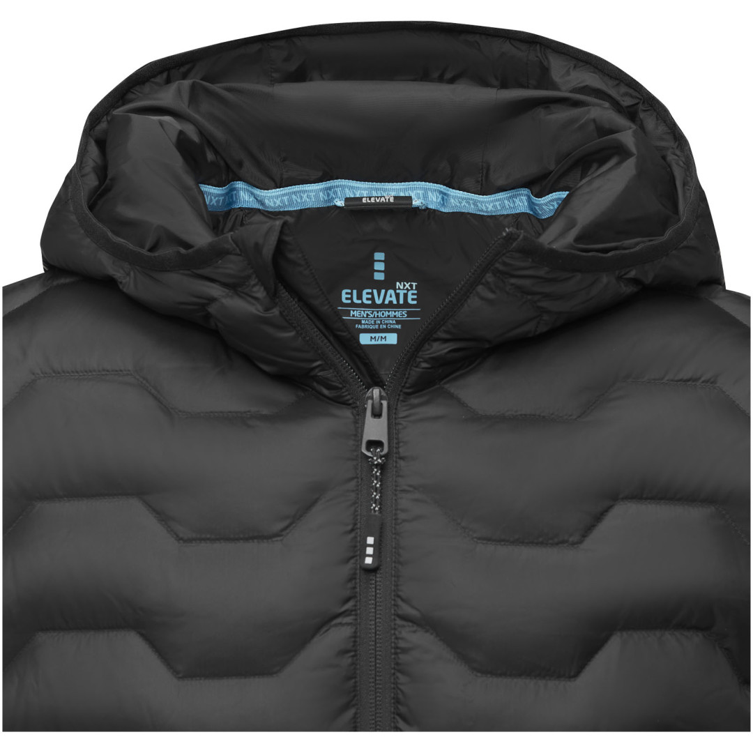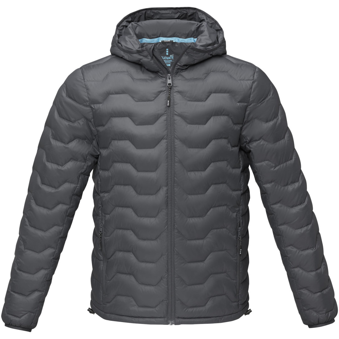 Udržateľné reklamné oblečenie. GRS certifikovaný recyklovaný prostredný predný zips. Vnútorný poklop s chráničom brady. Predné vrecká s GRS certifikovaným reverzným zipsom. Vnútorné vrecko. Elastická sťahovacia šnúrka s nastaviteľným zámkom šnúrky v dolnom leme. Elastické zaväzovanie na kapucni. Ťaháčiky na zips s príjemným povrchom. Značkové závesné pútko. Potlač štítku technológiou heat transfer pre väčšie pohodlie. Matná cire 380T tkanina s vodoodpudivou a nepriepustnou úpravou zo 100 % GRS certifikovaného recyklovaného nylonu, výplň - páperová izolácia: Responsible Down Standard (RDS) z 90 % recyklovaného páperia a 10 % recyklovaného peria, 115 g/m2