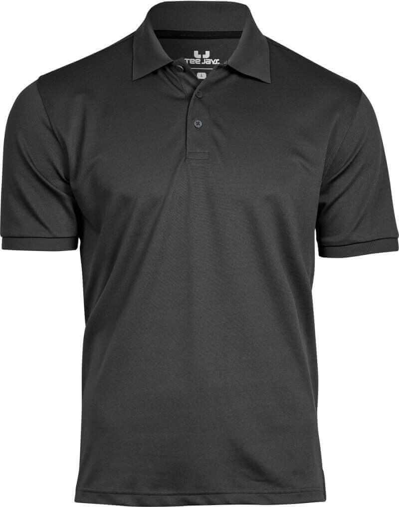 Vypasovaný strih, priedušný materiál, plochý pletený golier, gombíková léga s 3 gombíkmi tón v tóne, elastické manžety na rukávoch, regulujúce vlhkosť a rýchloschnúci