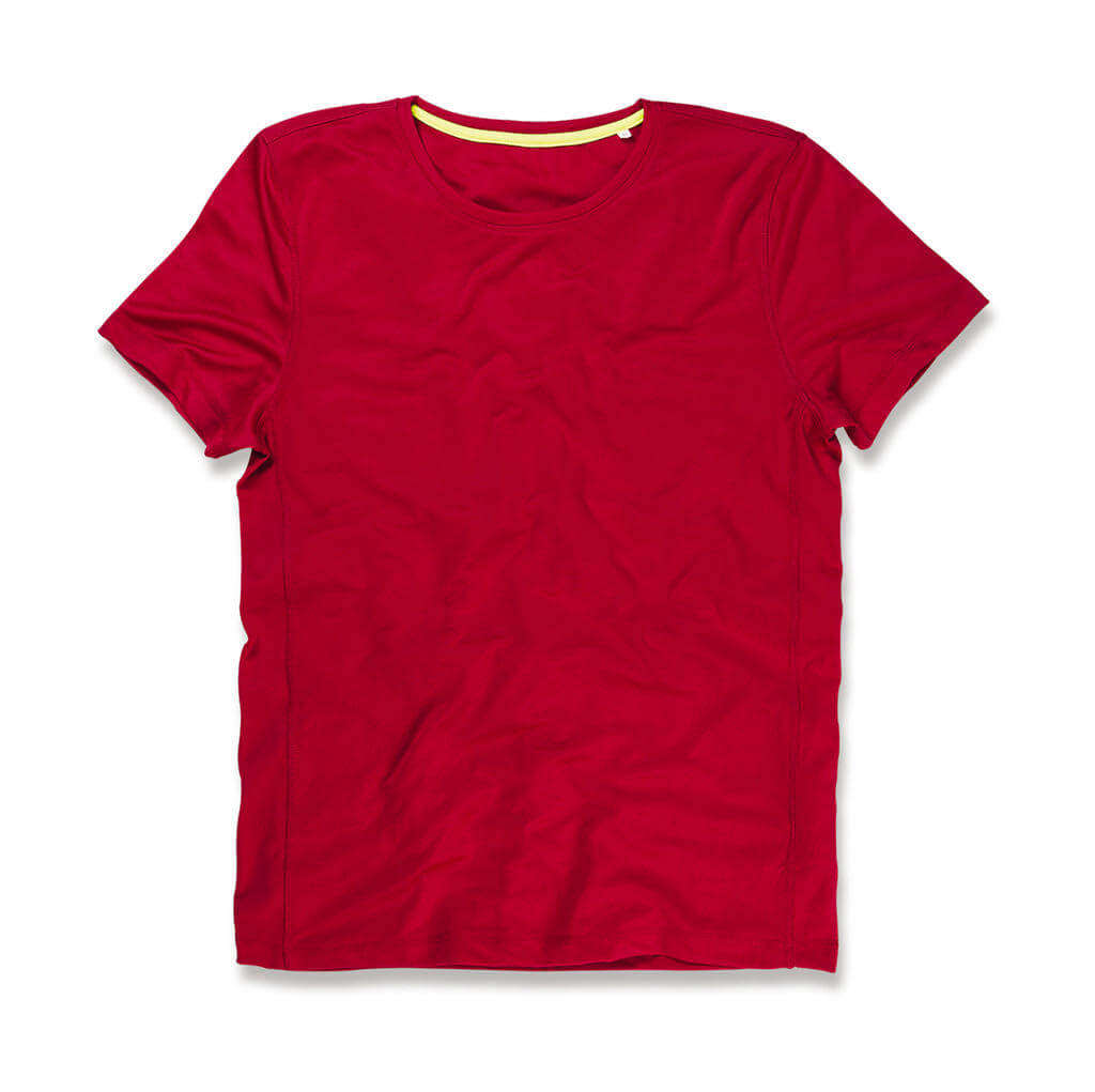 Tričko je z elastickej tkaniny so vsadenými rukávmi, kontrastnou spevňujúcou páskou na krku (Cyber Yellow), ozdobnými plochými švami, bočnými panelmi a klasickým strihom.