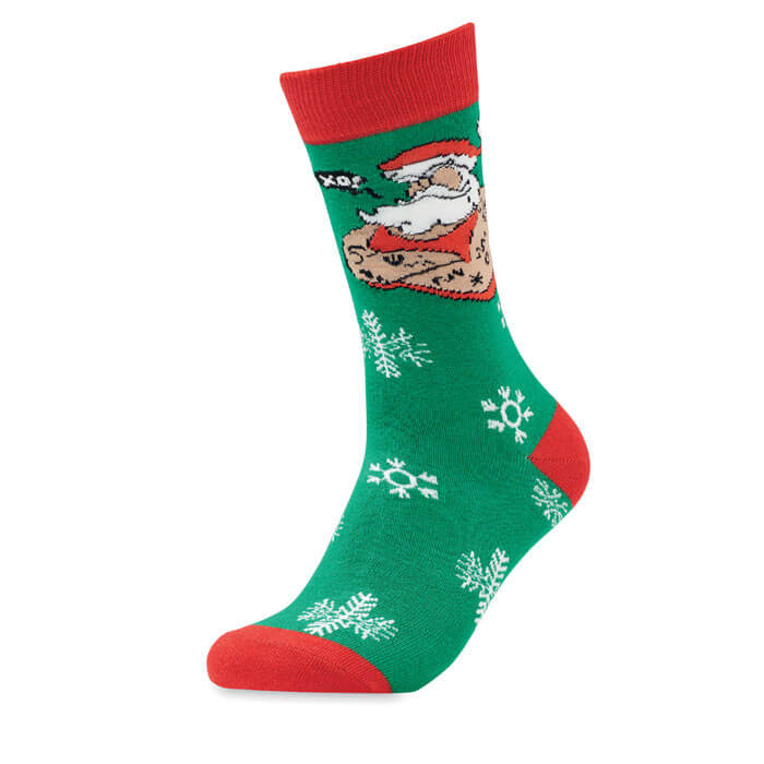 Pár vianočných ponožiek zo 75% bavlny, 23% polyesteru RPET a 2% spandexu. Dodávané v darčekovej krabici. Veľkosť L = 43-46. Každý si rád urobí radosť a dodá svojmu outfitu trochu viac šmrncu s vtipnými alebo špeciálnymi tematickými ponožkami. Tieto slávnostné vianočné ponožky sú skvelým darčekom pre každého.