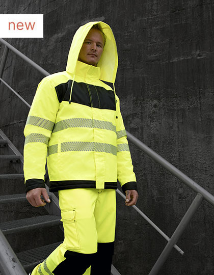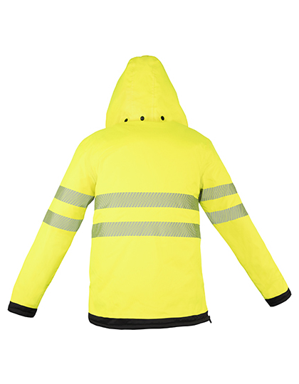Rad pre firemnú identitu | EN ISO 20471:2013/A1:2016, trieda 3 | Oranžová vyhovuje aj norme RIS-3279-TOM ISS 2; EN 343:2019 3:1 vodeodolné (8 000 mm) | Materiály: STANDARD 100 značky OEKO-TEX® 177 g/m² | Dva delené 5cm reflexné pruhy okolo tela a na rukávoch | Vrecká | Dve bočné vrecká, skryté náprsné vrecko na zips, jedno vnútorné vrecko | Pripojená kapucňa | Odolné voči vetru a dažďu| Výrobca zaručuje reflexné vlastnosti podľa normy STN EN pre 25 umývacích cyklov pri 40 °C | Vybavené čiarovým kódom EAN | Jednotlivo balené v polyetylénových vreckách.