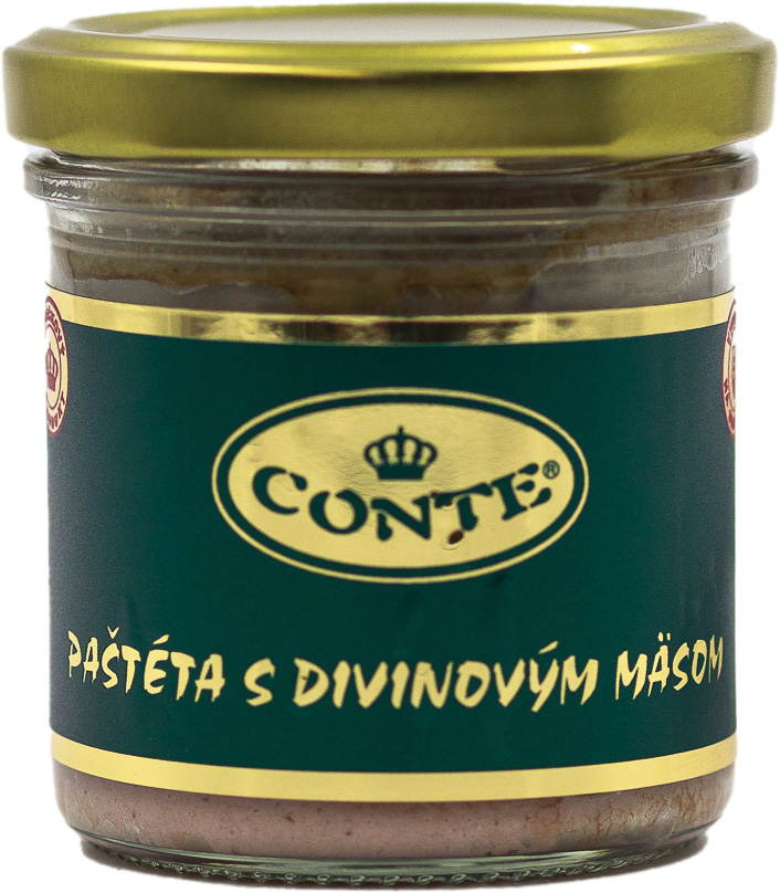 Paštéta s divinovým mäsom NATUR – jemná sterilizovaná paštéta v skle zo 35 % bravčovej pečene, 30 % slaniny a 20 % divinového mäsa. Dochutená vývarom, soľou a prírodnými koreninami. Bez éčok.