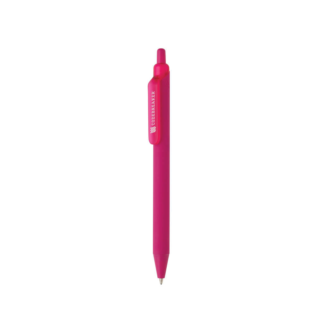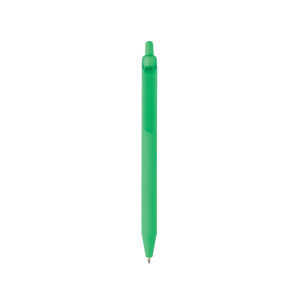 Pero je vyrobené z 91% z recyklovaného ABS a kombinuje odolnosť so štýlom. Je vybavené hladkým pogumovaným silikónovým úchopom pre väčšie pohodlie. Matný povlak na klipe a hrote dodáva elegantný vzhľad, zatiaľ čo modrý atrament vydrží až 1200 metrov. Pero sa ovláda pomocou klikacieho mechanizmu.
