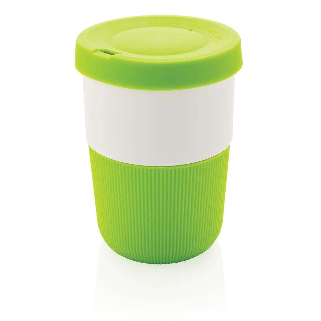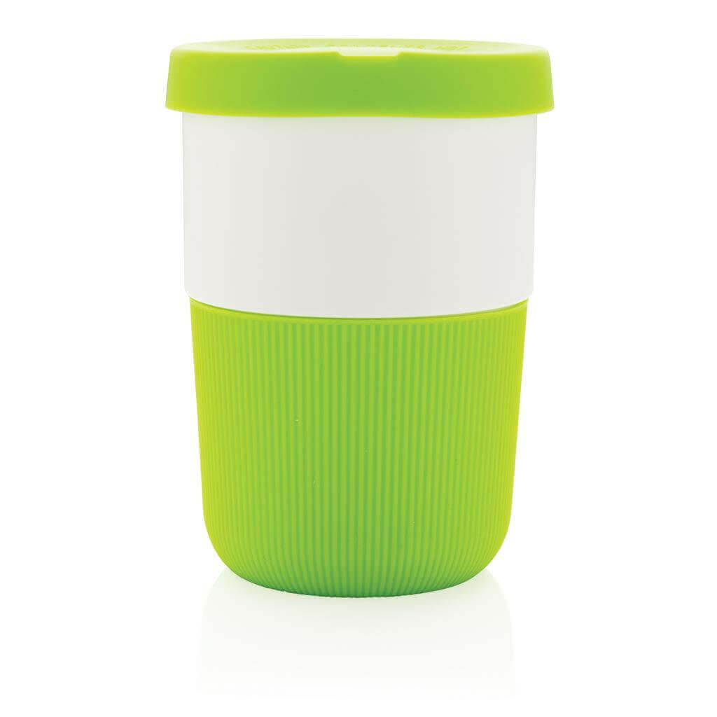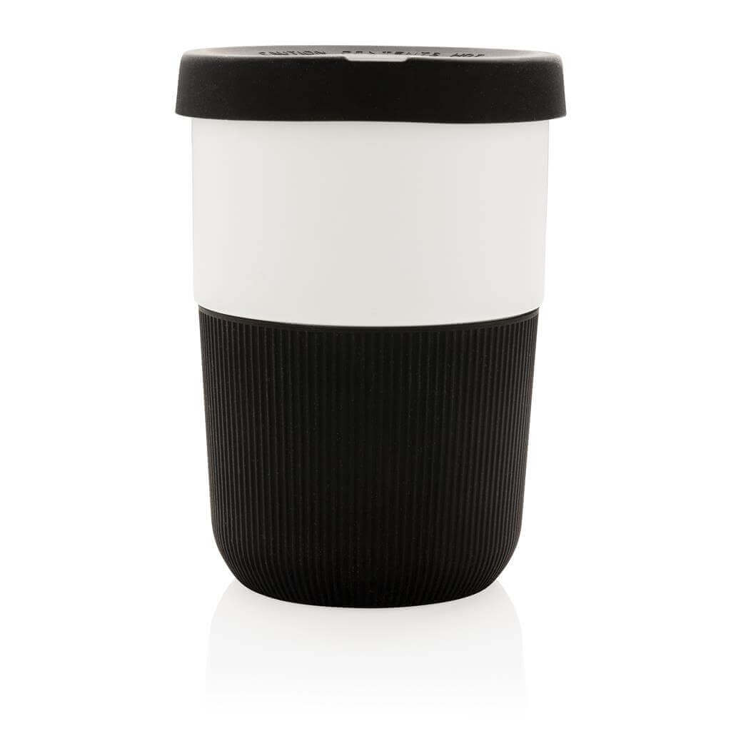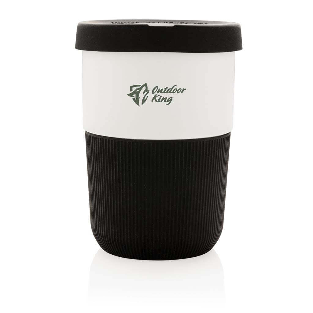 Ekologická alternatíva k tradičným jednorázovým kelímkom na prenos horúcich nápojov. Vyrobený z rastlinných materiálov (PLA) so silikónovým úchopom zabraňujúcim popálenia. Bezpečný až do 100 ° C, 100% bez melamínu. Objem: 380ml.