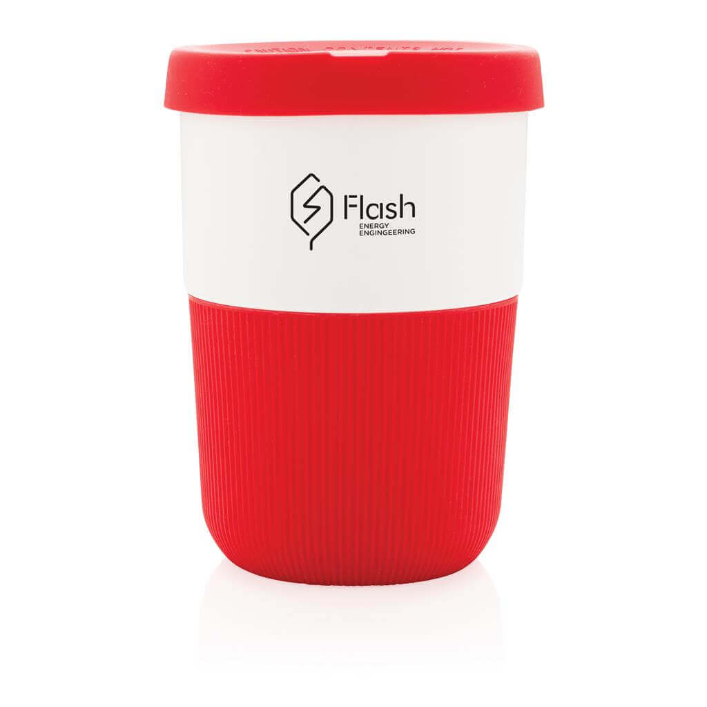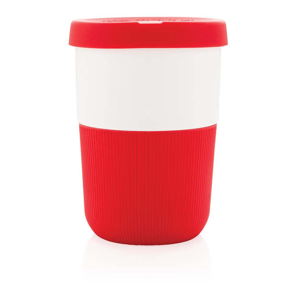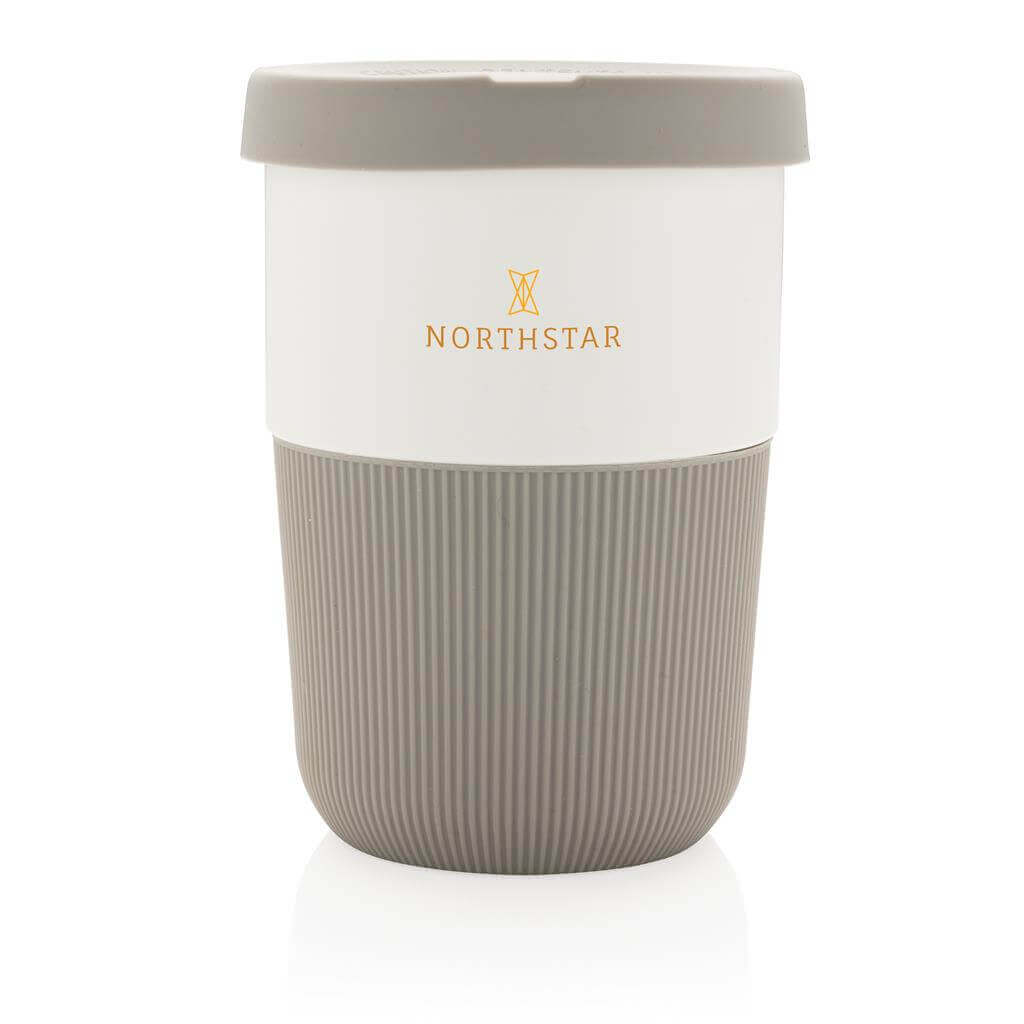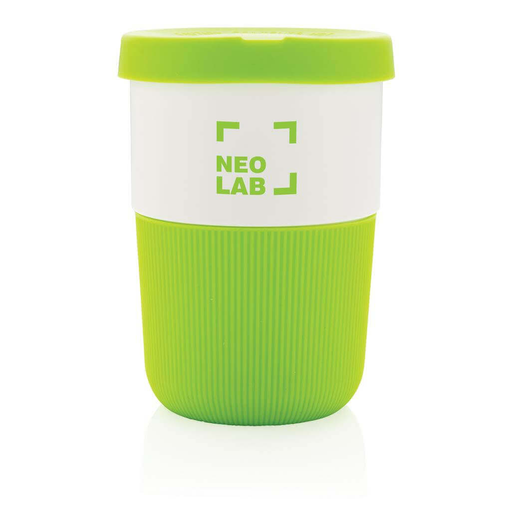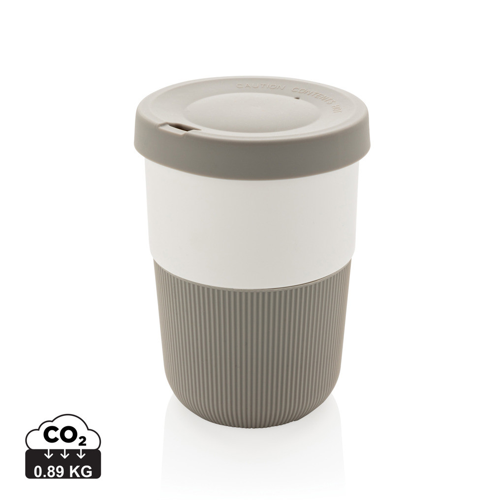 Ekologická alternatíva k tradičným jednorázovým kelímkom na prenos horúcich nápojov. Vyrobený z rastlinných materiálov (PLA) so silikónovým úchopom zabraňujúcim popálenia. Bezpečný až do 100 ° C, 100% bez melamínu. Objem: 380ml.