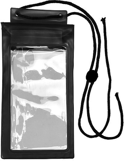 Plastový nepremokavý ochranný obal pre mobilné zariadenia, so zatváracím pásikom. Vrátane šnúry (s bezpečnostným uzáverom) približne 46 cm dlhá. Obrazovku telefónu môžete ovládať ako zvyčajne vďaka špeciálnemu materiálu krytu.