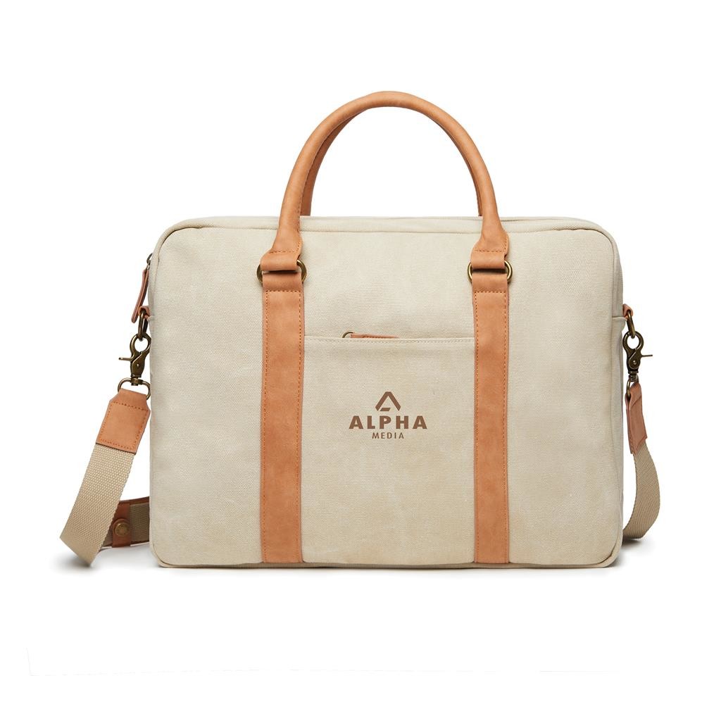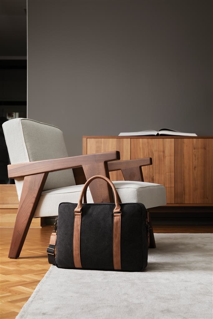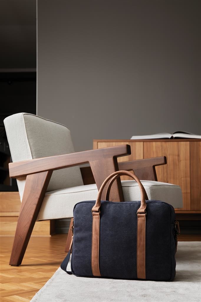Do tejto všestrannej tašky s elegantným a praktickým prevedením sa zmestí všetko, čo potrebujete. Polstrovaný taška na notebook do veľkosti 16 palcov je ideálny na služobné cesty. Vyrobené zo 40% recyklovaného polyesteru a zo 60% z recyklovanej bavlny. Vďaka nastaviteľnému a odnímateľnému ramennému popruhu môžete tašku nosiť cez rameno alebo si ju prehodiť cez ruku. Cestujte elegantne za každých okolností!