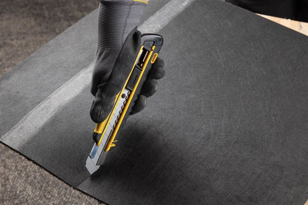 Opakovane plniteľný nôž s odlamovacou čepeľou. Pogumovaná soft grip rúčka vyrobená z RCS recyklovaného ABS a TPE, čepeľ z SK4 nehrdzavejúcej ocele. RCS (Recycled Claim Standard) je globálny štandard, ktorý umožňuje overiť použitie recyklovaného materiálu v produkte naprieč celým dodávateľským reťazcom. Celkový podiel recyklátu podľa váhy produktu: 41 %. Čepeľ je možné po stupení jednoducho o diel zalomiť a získať tým opäť ostrú časť. Po využití celej čepele ju možno jednoducho vymeniť a nahradiť novú. Balenie obsahuje 1 nasadenú a 2 náhradné čepele. Balené v FSC® kraftovej darčekovej krabičke.