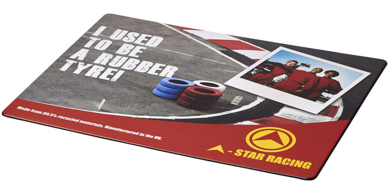 Podložka pod myš Brite-Mat® s materiálom z recyklovaných pneumatík. Podložka pod myš navrhnutá pre prácu so štandardnými guličkovými a optickými myšami. Vyrobené z 99,5% z recyklovaných materiálov, vrátane 40% recyklovaného materiálu z pneumatík a navyše z recyklovaných plastov a papiera. Laminovaný papier, recyklované plasty a materiál z recyklovaných pneumatík.