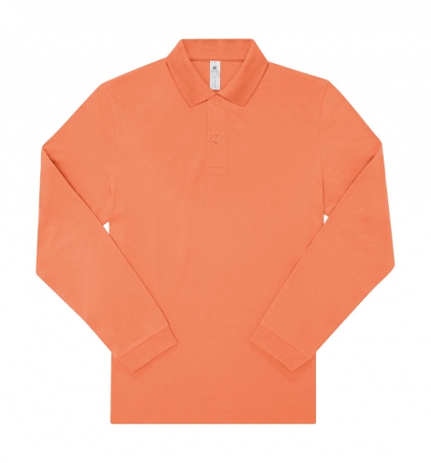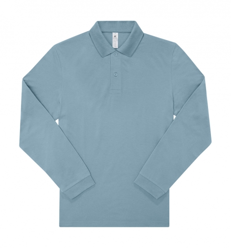 210 g/m², 100% bavlna, predzrážaná a prstencová, jemné piqué s vysokou hustotou, Sport Grey: 90% bavlna, 10% viskóza; Heather Burgundy, Heather Grey Fog, Heather Blue: 80% bavlna; 20% polyester; Heather Tarmac: 60% bavlna, 40% polyester, jemná na dotyk, spevňujúca prémiová páska so vzorom rybej kosti na krku a na bočných rozparkoch, dlhé rukávy, rebrovaný golier a manžety rukávov, 2 gombíková plaketa, gombíky v odpovedajúcej farbe, bočné švy, rovný povrch pre jasné a ostré výsledky potlače