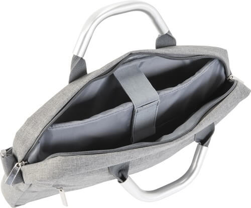 Konferenčná a laptopová taška z Polycanvas (600D) s hlavným priestorom a predným vreckom na zips. Hlavná komora je rozdelená na dve čalúnené oddeľovače a vo vnútri sú štyri menšie vrecká. Hodí sa na 13-palcový notebook. S hliníkovými držadlami.