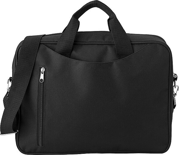 Taška na notebook z polyesteru (600D), s predným vreckom na zips, jedným veľkým, zipsom, vypchatým oddelením vrátane vrecka so zapínaním na suchý zips, dvoma malými remienkami na nosenie a jedným veľkým nastaviteľným remienkom na plece, ktoré sú vhodné pre 14 'laptop.