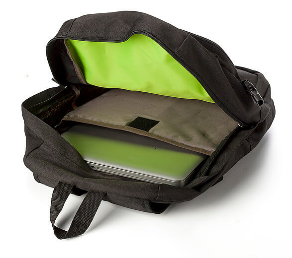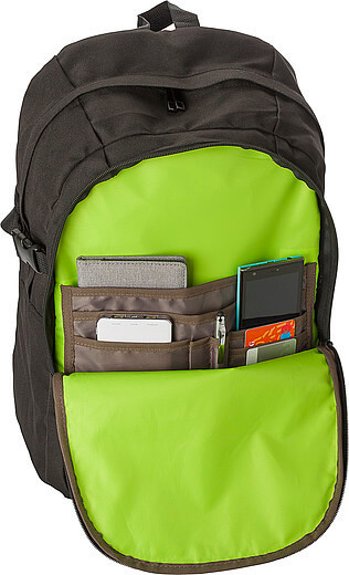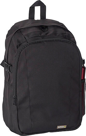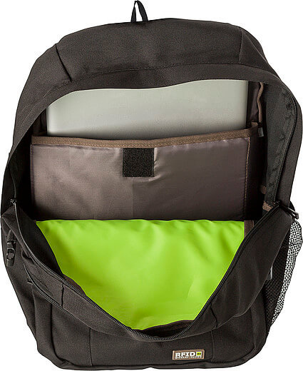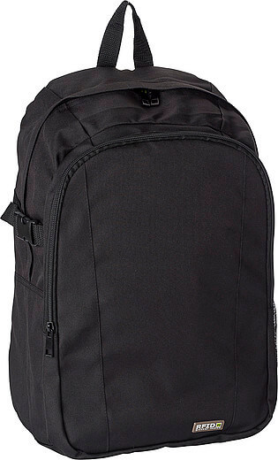 Polyesterový (600D) batoh s blokátorom RFID. Predné vrecko a hlavný priestor majú vo vnútri zips a niekoľko vreciek, s priestorom pre laptop (14 palcov). Na boku je tiež vonkajšie vrecko zo sieťoviny. Popruhy sú čalúnené a nastaviteľné.