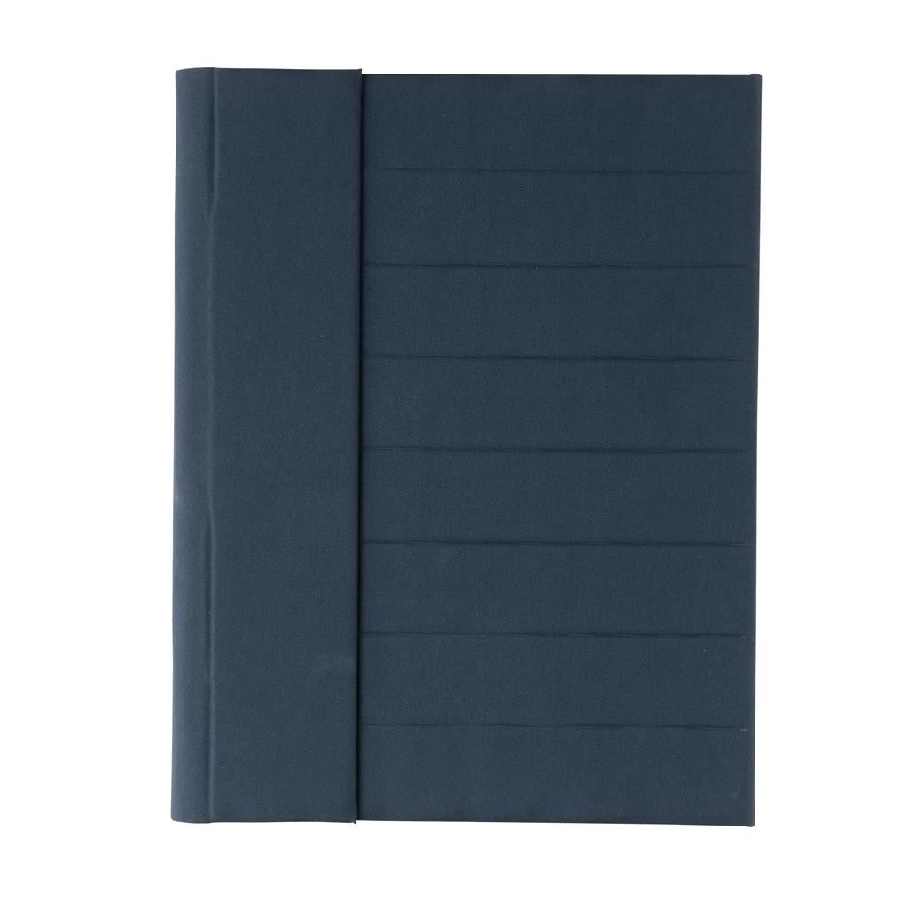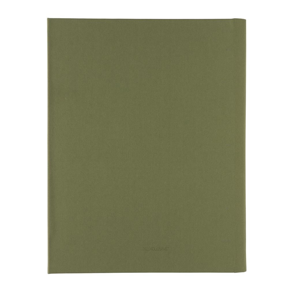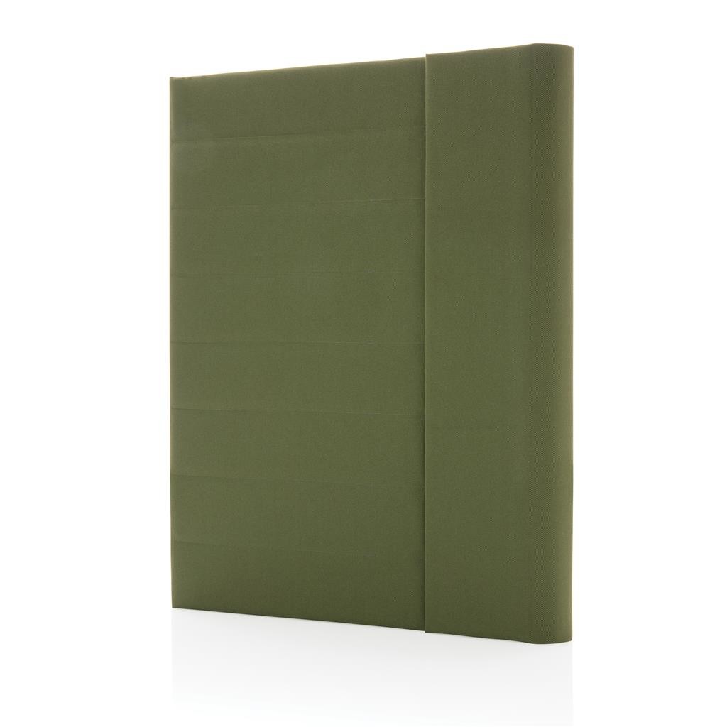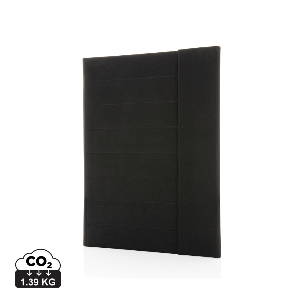 Moderné portfólio vo formáte A4 z kolekcie Impact. Vnútri obsahuje 1 veľké vrecko, 2 dodatočné malé vrecká, pútko na pero a vymeniteľný poznámkový blok z FSC recyklovaného linkovaného krémového papiera (20 strán, 70g/m2). Vnútorná aj vonkajšia časť je 100% vyrobená z recyklovaného polyesteru vrátane skenovateľnej zložky AWARE™ garantujúca obsah recyklátu. Na výrobu bolo využitých 3,2 500ml PET fliaš a bolo usporených 1,95 litrov vody. Z výťažku každého predaného produktu z kolekcie Impact je navyše prispených 2 % na podporu iniciatívy Water.org. Bez PVC.
